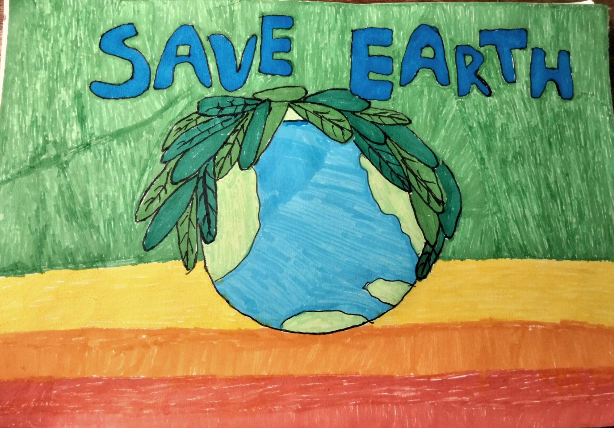 Bức tranh nói về sự chênh lệch giữa rừng cây xanh trên và sự nóng lên toàn cầu của trái đất.