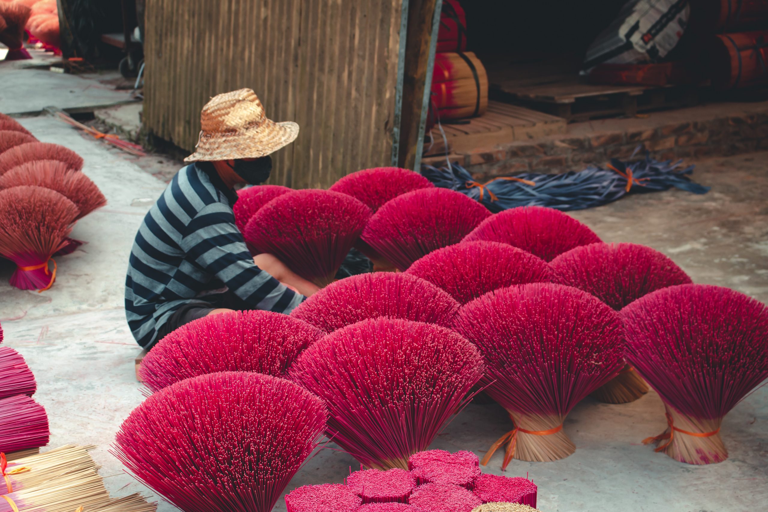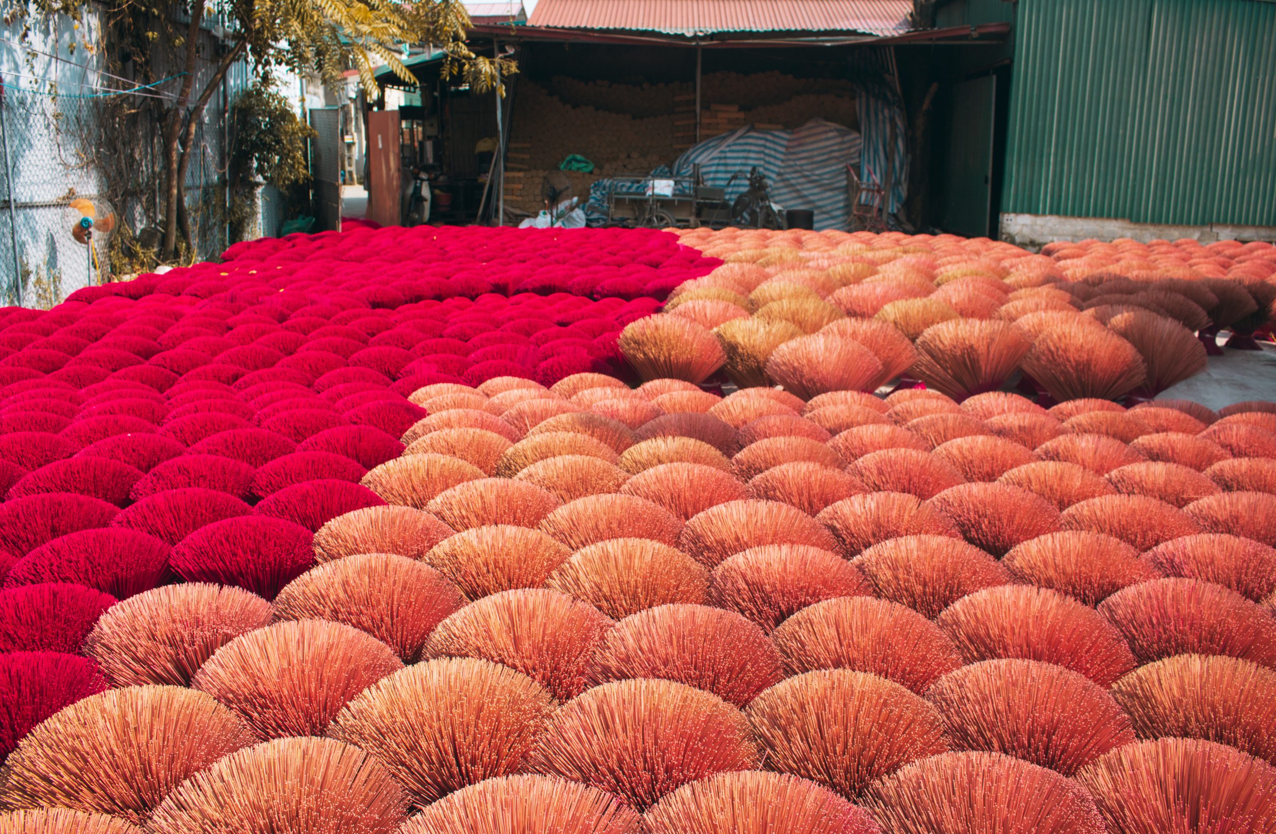 Tác phẩm ” Hương và Sắc” được thực hiện tại làng nghề làm Hương truyền thống ở Hà Nội. Ở đây có đầy đủ hai yếu tố hương và yếu tố sắc. Hương ở đây chính là cây tăm hương, một thứ quan trọng không thể thiếu đối với nền văn hóa Việt Nam và hương còn là mùi của tăm hương, một mùi thơm dịu từ thảo mộc tạo lên cảm giác gợi nhớ, quen thuộc của những ngày rằm ngày lễ, hội. Sắc là vẻ đẹp những người làm hương truyền thống chịu thương chịu khó, những người làm hương đã lưu truyền bản sắc văn hóa này hơn 100 năm và sắc còn là màu sắc của những bó hương đỏ rực như những “đóa hoa” dưới nắng.