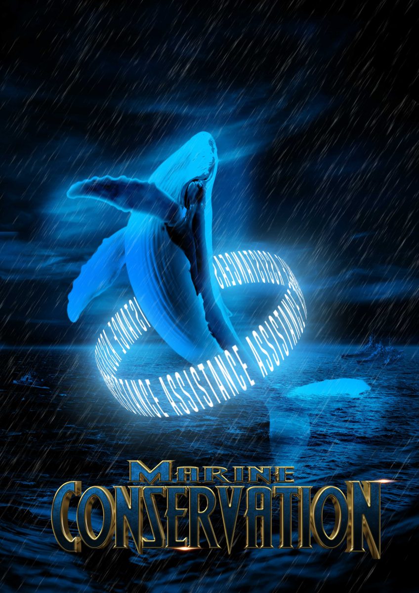 Dòng chữ Marine Conservation (Bảo tồn biển) được thể hiện rõ nét và cách điệu độc đáo để mọi người đập vào có thể nhìn thấy thông điệp mà mình muốn truyền tải.