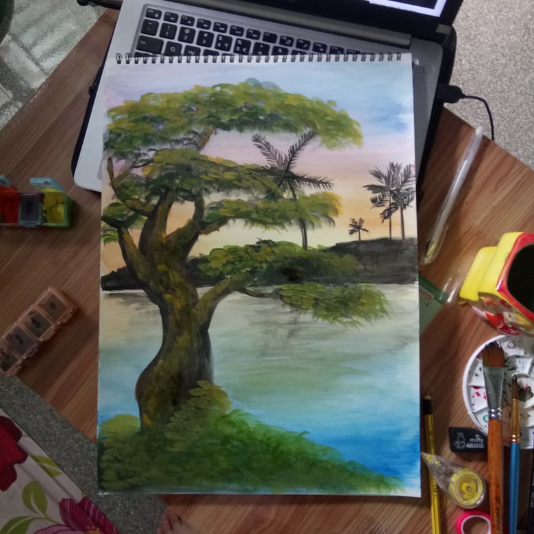 Ở tác phẩm dự thi vẽ, cảm xúc mình đặt vào từng bức tranh là những cảm xúc luôn có ở trong cuộc sống. Mình lựa chọn những tông màu dịu mắt làm cho bức tranh thêm nhiều cảm xúc, cảm xúc bồi hồi, mong đợi, mong 1 cuộc sống bình yên trong vắt như dòng sông. Bài vẽ của mình thể hiện 1 sự yêu đời yêu tự do, có mong đợi về tương lai của lớp trẻ, có sự lãng mạn của tình yêu đôi lứa.