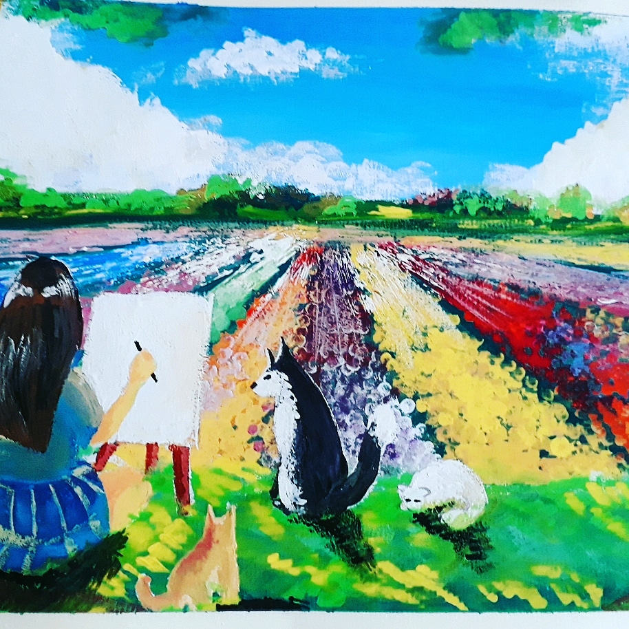 Ý tưởng của mình về các tác phẩm tham gia kỳ Show It NOW là nói về những hình ảnh đẹp của cuộc sống. Bức tranh của mình thể hiện nhiều màu sắc thể hiện cuộc sống sống động, rực rỡ. Đây không chỉ mơ ước của 1 mình mình mà còn là mơ ước của rất nhiều con người trong hiện tại. Một thành phố xanh, sạch, đẹp hay đơn giản ngồi trước cánh đồng hoa và vẽ chúng lại.