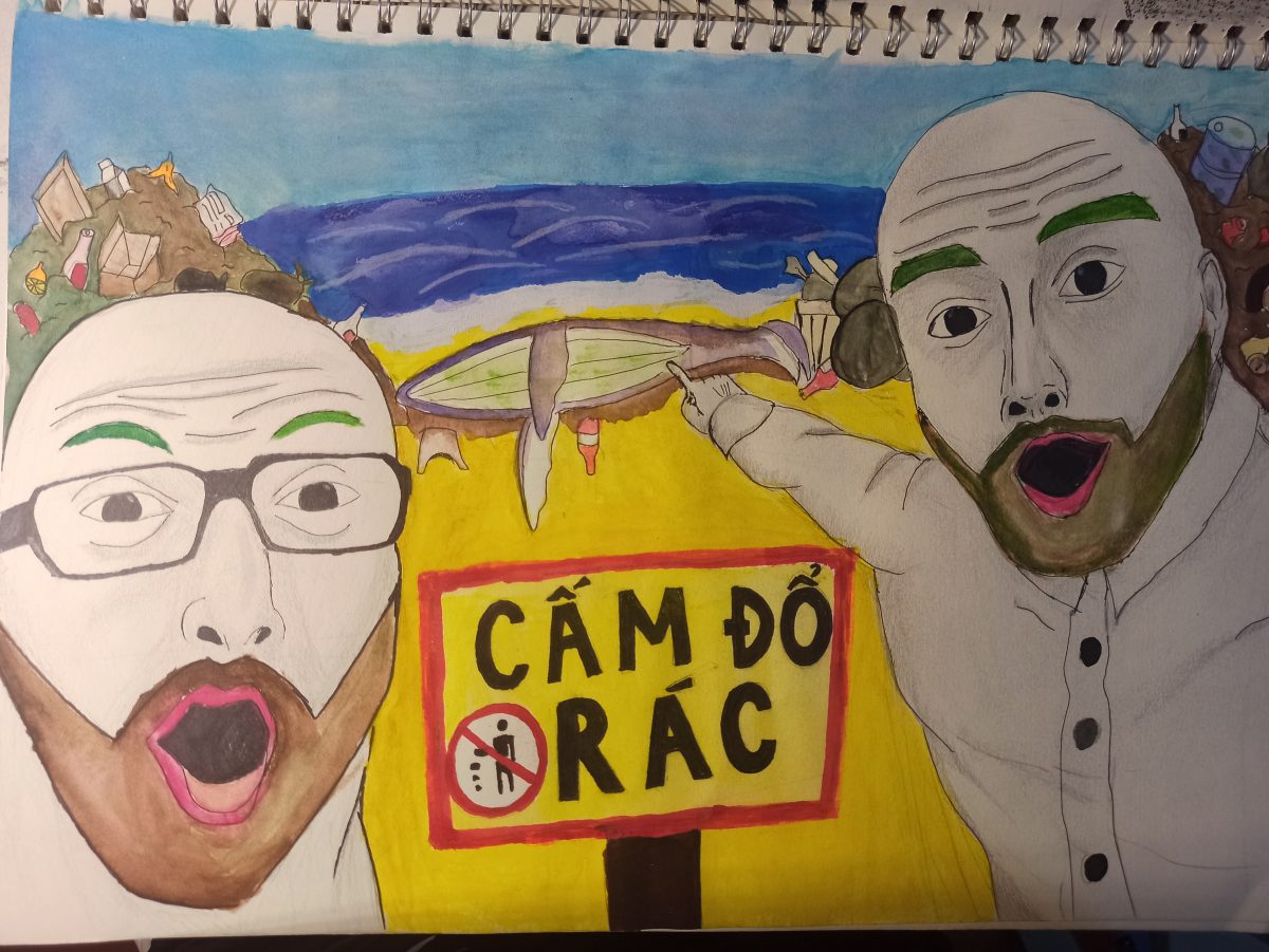 Ý tưởng tác phẩm là do mình hay đi du lịch khá nhiều đặc biệt là biểu và thấy rác khá nhiều trên bãi biển nên mình muốn vẽ về điều đó.