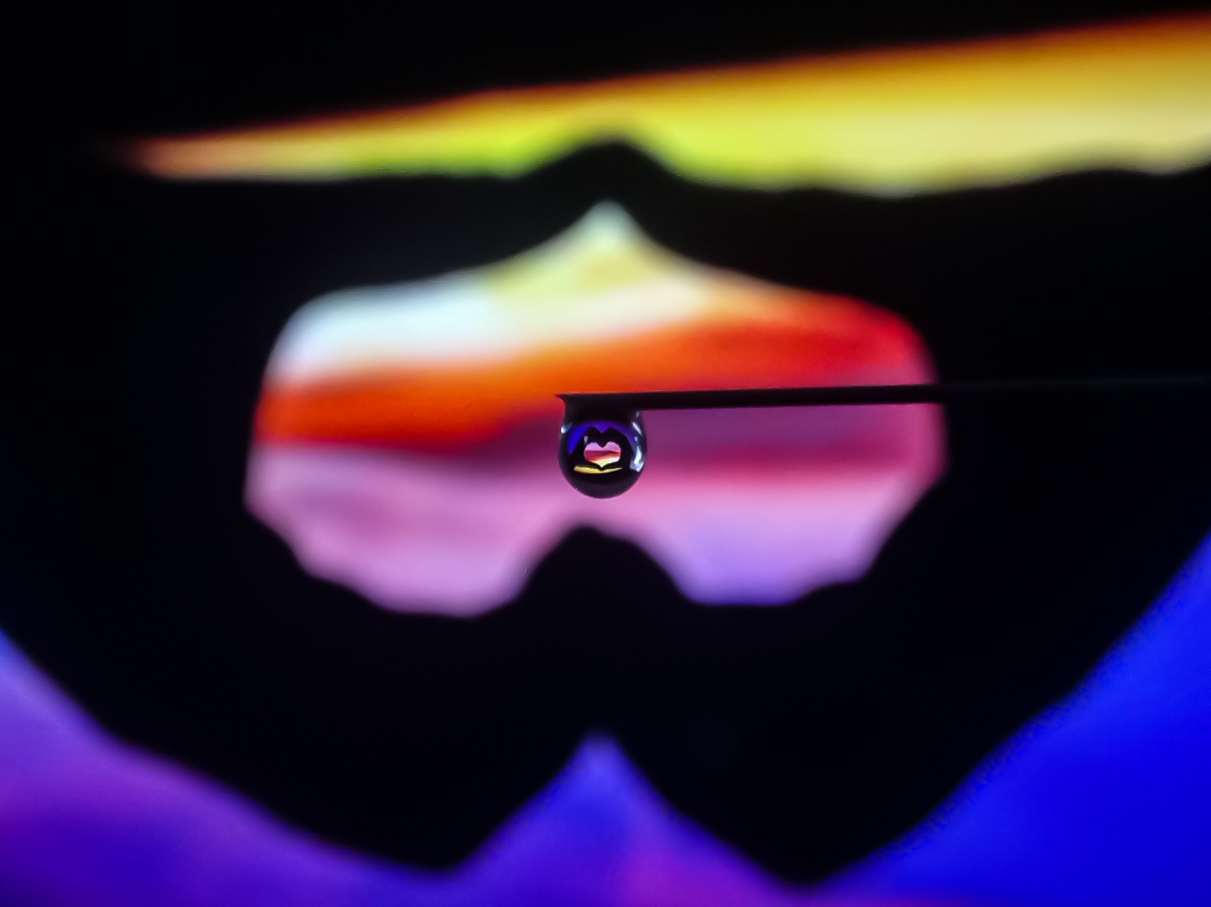 Bức ảnh thể loại macro ngắm nhìn một khung cảnh lãng mạn qua giọt nước được chụp bằng smartphone.