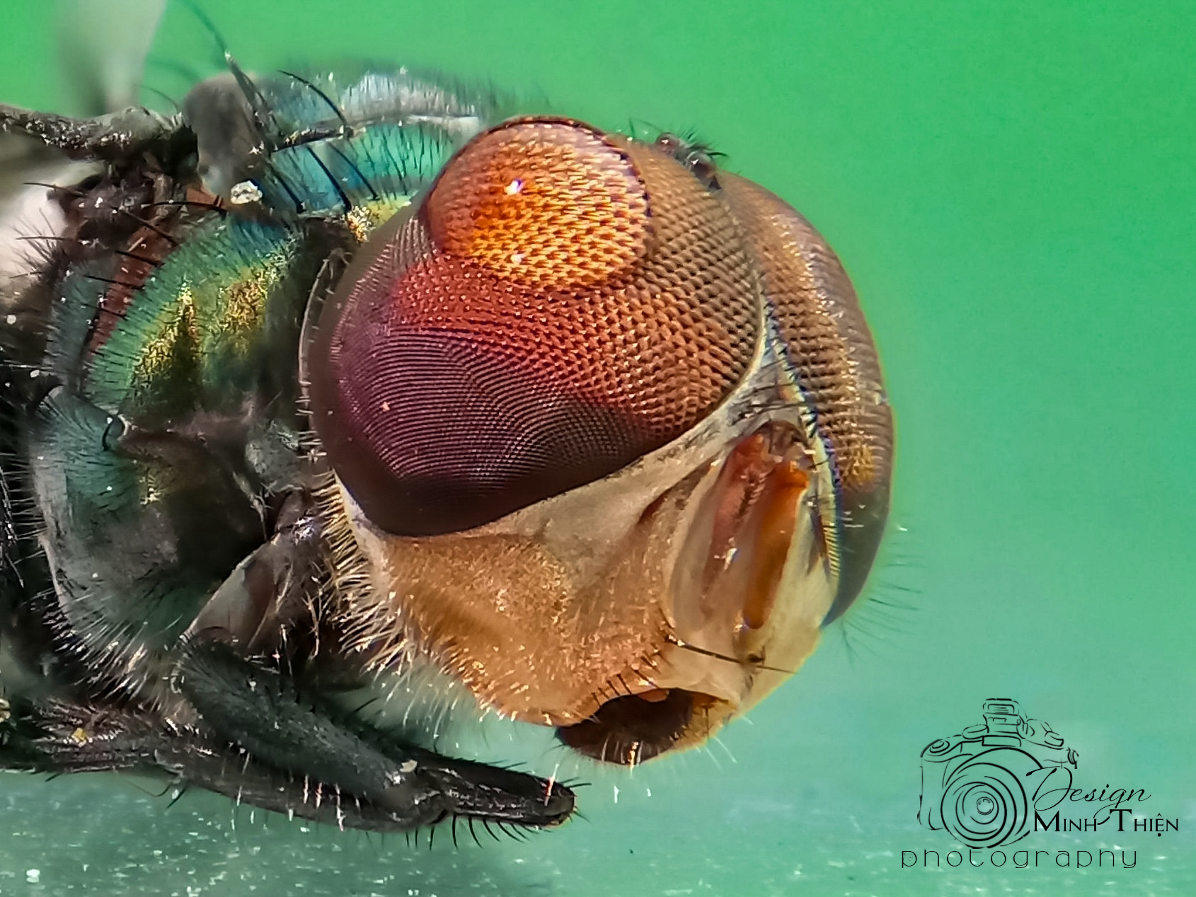 Bức ảnh thể loại stacking focus cho ta nhìn cận cảnh hơn về những bộ phận trên phần đầu con ruồi được chụp bằng smartphone.