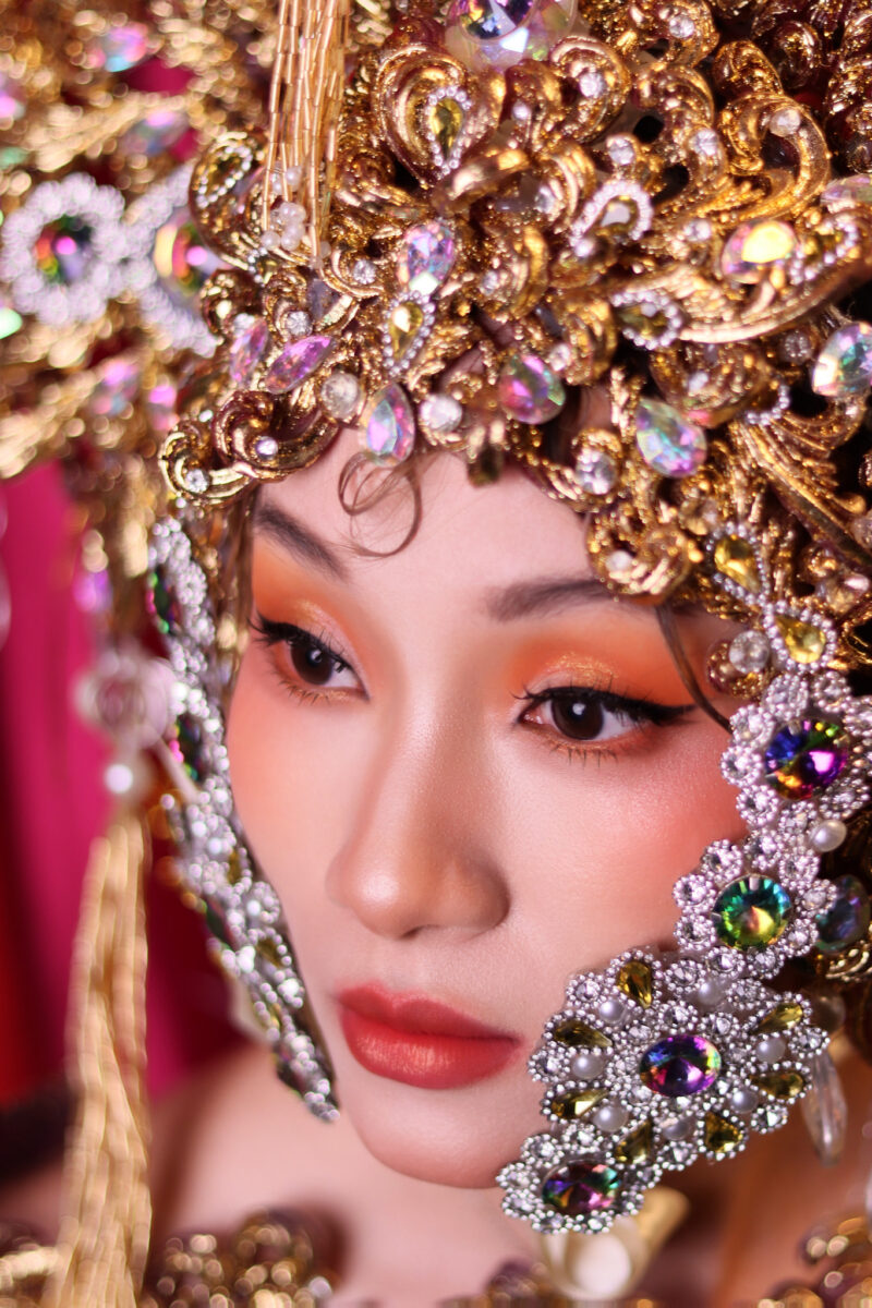 “Long Giang Khúc” là concept thời trang nghệ thuật lấy cảm hứng từ hát bội miền Tây Nam Bộ – một loại hình sân khấu truyền thống rực rỡ sắc màu, giàu cảm xúc và bản sắc dân tộc.