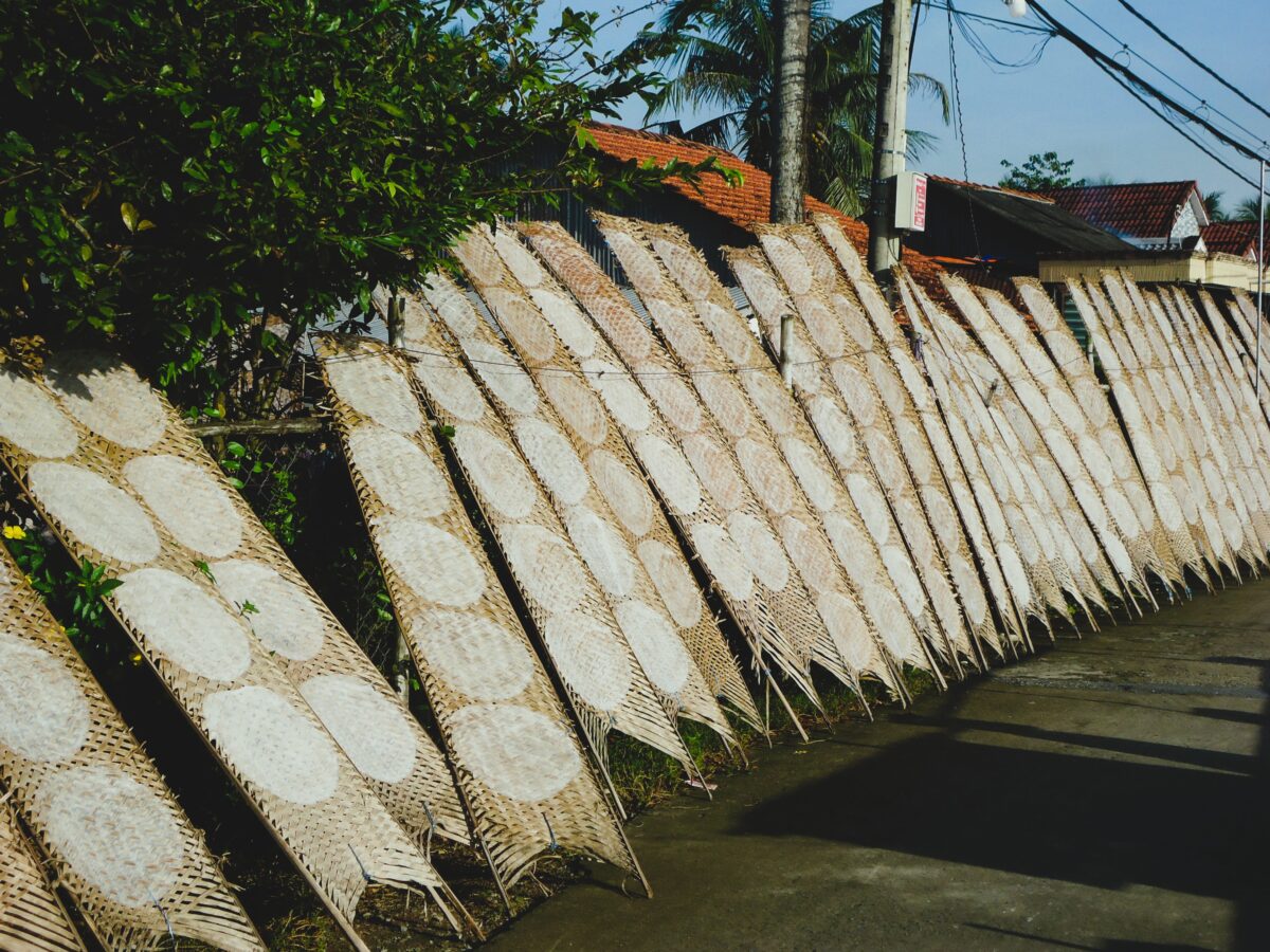 Tác phẩm 4: Những chiếc bánh tráng nằm thẳng tắp trên những giàn phơi. Chúng tắm dưới cái nắng của buổi sớm dịu dàng, trong vắt.