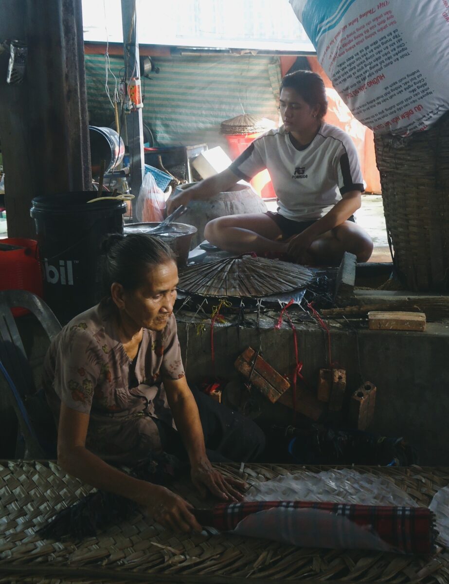 Tác phẩm 2: Một sự hòa hợp giữa người thợ trẻ và người nghệ nhân lão làng, một người tráng và một người phơi. Sự pha trộn giữa hiện đại và truyền thống mang lại một nét đẹp nghệ thuật đời thường cho bức ảnh vào buổi sáng sớm.