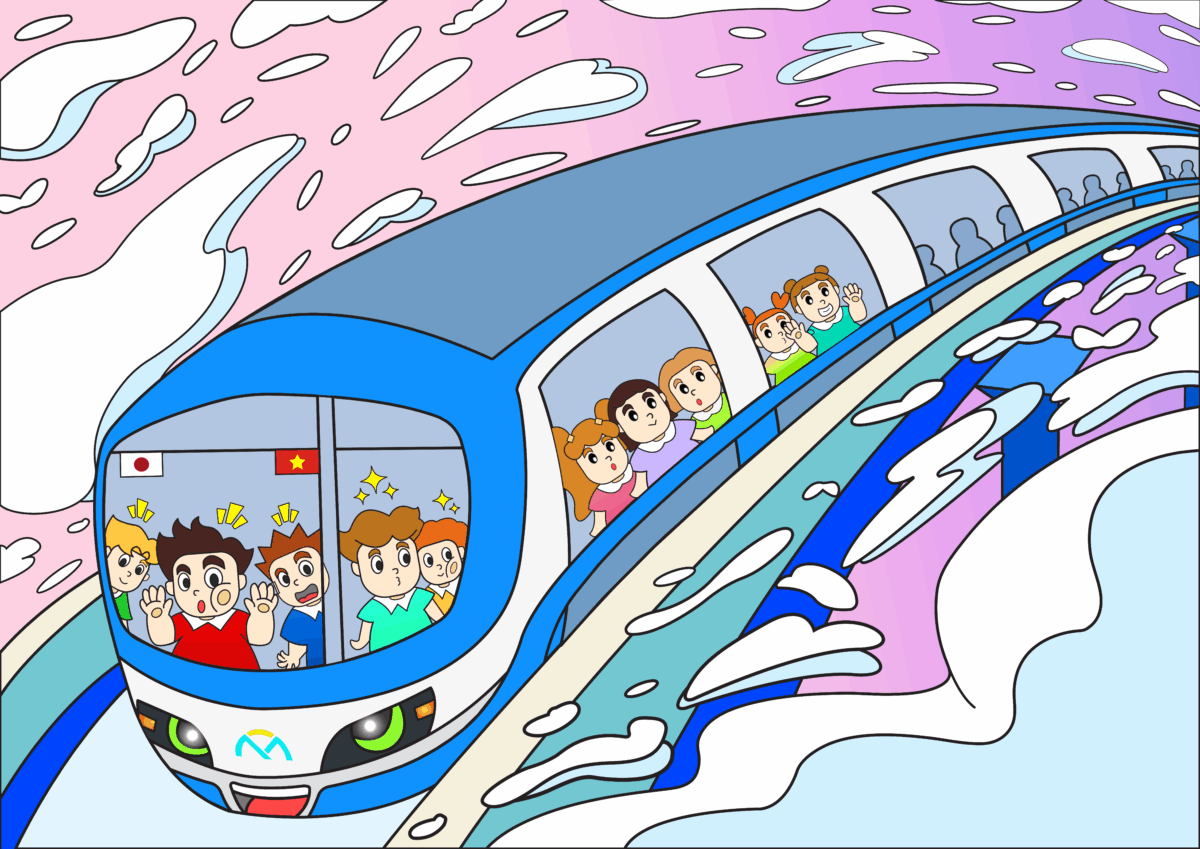 Bức tranh kể về chuyến phiêu lưu của các bạn nhỏ Việt Nam và Metro (chiếc tàu chạy hoàn toàn bằng điện dưới sự hợp tác giữa công nghệ Nhật Bản và cơ sở hạ tầng của Việt Nam, trong bức tranh này, tàu Metro đã được nhân hóa thành một chiếc tàu có cảm xúc để gia tăng sự kết nối với các bạn nhỏ trong tranh). Metro và các bạn nhỏ nước Việt đang cùng nhau đi qua mọi nẻo đường để đến với đất nước Nhật Bản với mục đích tham quan, tìm hiểu về tình hữu nghị, mối quan hệ tốt đẹp giữa Việt Nam và Nhật Bản. Cũng như đất nước mặt trời mọc này chính là quốc gia đã cung cấp nguồn vốn lớn và công nghệ để xây dựng tuyến metro này. Bức tranh miêu tả nét đẹp của tàu Metro cũng như tự hào rằng Việt Nam có được công trình hạ tầng đô thị hiện đại, văn minh, thay đổi diện mạo xanh – sạch – đẹp cho thành phố.
