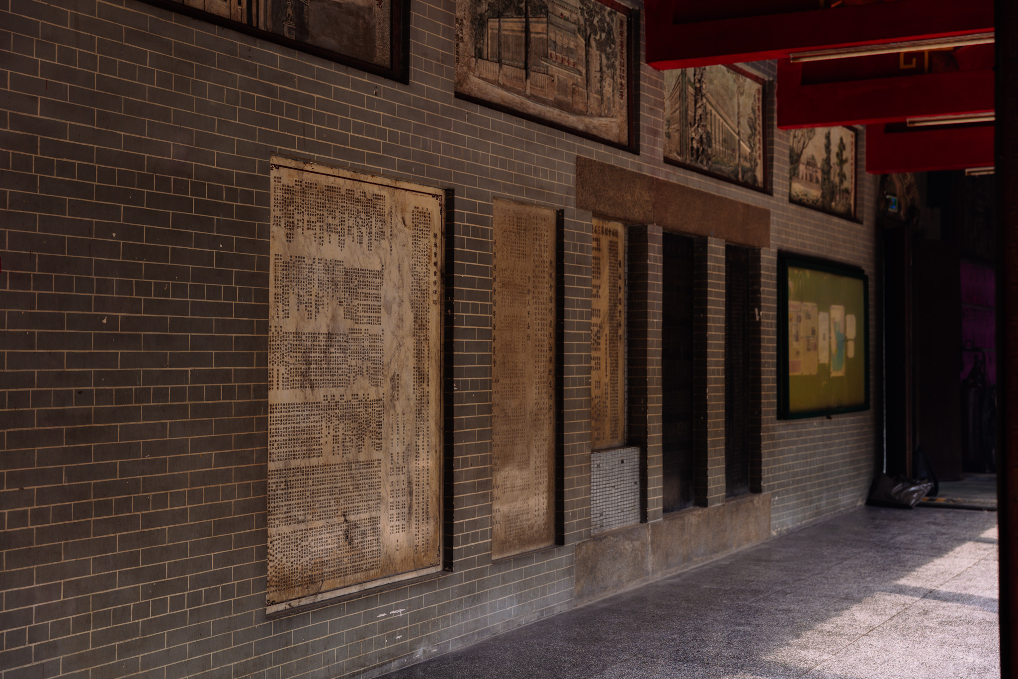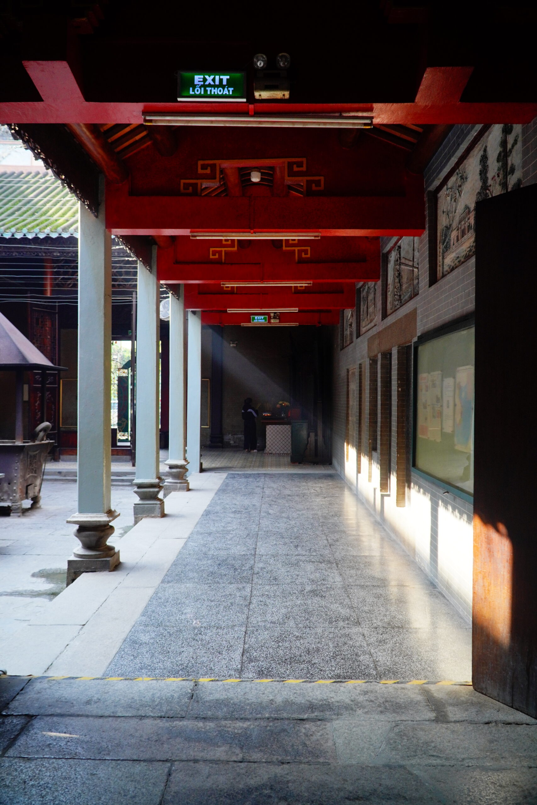 • Ở những bức ảnh được mình thể hiện, mọi người sẽ thấy kiến trúc mang đậm dấu ấn Lĩnh Nam Trung Hoa, với kiểu bố cục “nội công ngoại quốc” (trong hình chữ công 工, ngoài hình chữ quốc 国). Mái miếu được lợp ngói ống, trang trí công phu bằng các tượng gốm nhỏ, tái hiện những điển tích, tuồng hát xưa. Bước qua cổng, bạn sẽ thấy một không gian trầm mặc, tách biệt với sự ồn ào của phố thị.