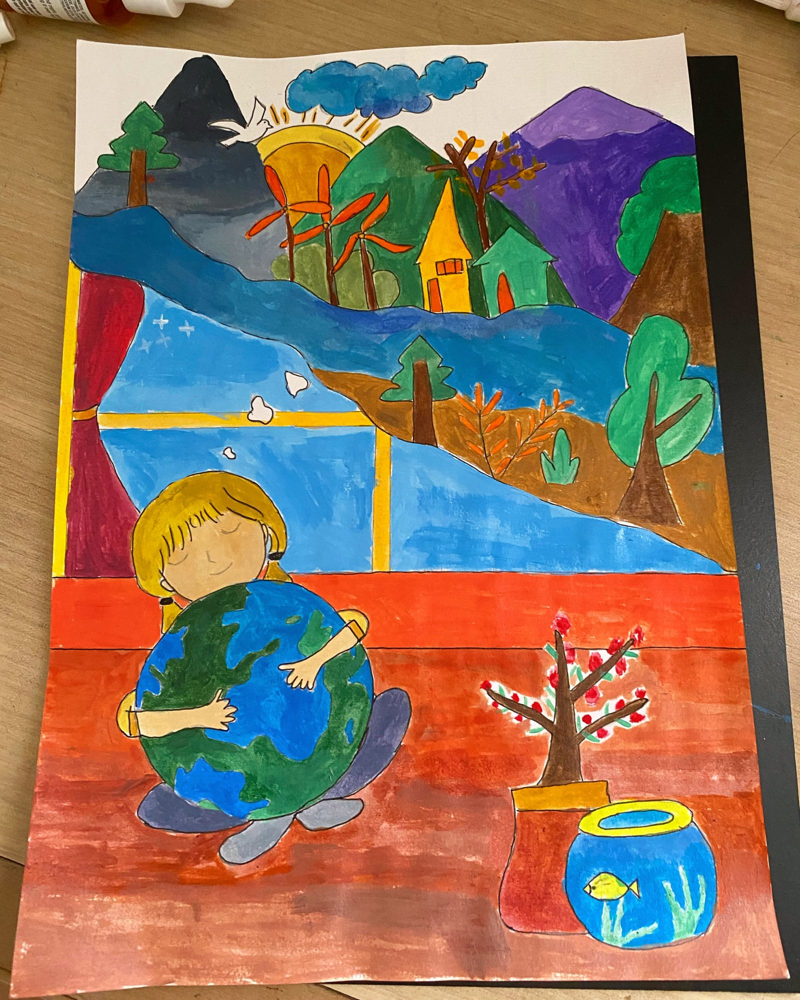 Khi chúng ta đang sống một cuộc sống hiện đại, đầy điều mới mẻ, thì chúng ta đã quên đi rằng mình đang sống và làm việc trong một môi trường bị ô nhiễm nặng nề. Bức tranh của em có thông điệp rằng: “Dream your life, make it bright”. Thông qua bức tranh này, em muốn truyền một năng lượng tích cực đến mọi người, bản thân em là một người rất yêu thiên nhiên, yêu môi trường nên em đã tham gia sân chơi thú vị này không chỉ cho mọi người hiểu sâu hơn về tầm quan trọng của việc bảo vệ môi trường mà còn cho mọi người biết được ước mơ của em. Em mong muốn rằng con người chúng ta sẽ nhận thức được sự nguy hại mà ô nhiễm môi trường mang lại, mong rằng chúng ta sẽ cùng nhau đoàn kết để có thể cứu lấy trái đất, cố gắng vì một cuộc sống không rác thải, không khói thuốc và vì một cuộc sống Xanh – Sạch – Đẹp.