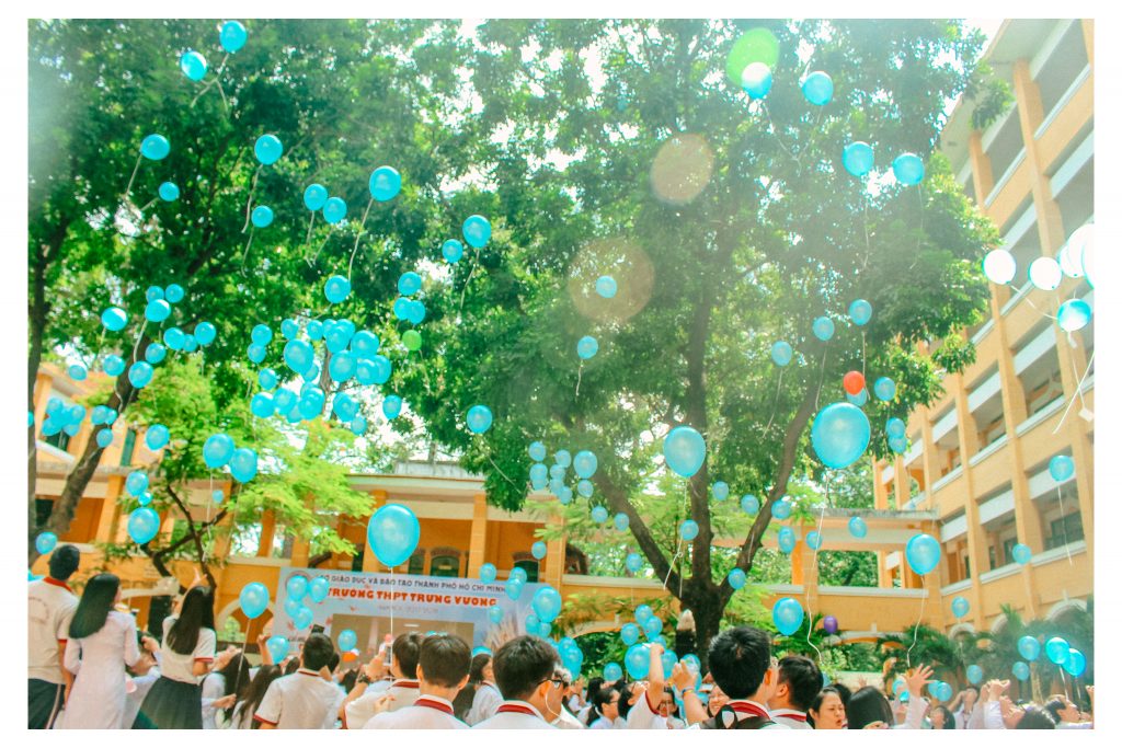 Đối với mỗi người đứng dưới sân trường này, cầm trong tay quả bóng xanh biếc này, ghi những nguyện vọng vào quả bóng rồi thả nó bay lên bầu trời xanh kia. Tức là, mong muốn cho tương lai sẽ giống như những quả bóng được thả bay lên trời, sáng lạn và rực rỡ. Mình mong tất cả các bạn đều đạt được kết quả cao nhất trong kì thi đại học sắp tới, và đạt được nguyện vọng đã được ghi lên bóng. Dũng cảm bước đi trên con đường sắp tới.