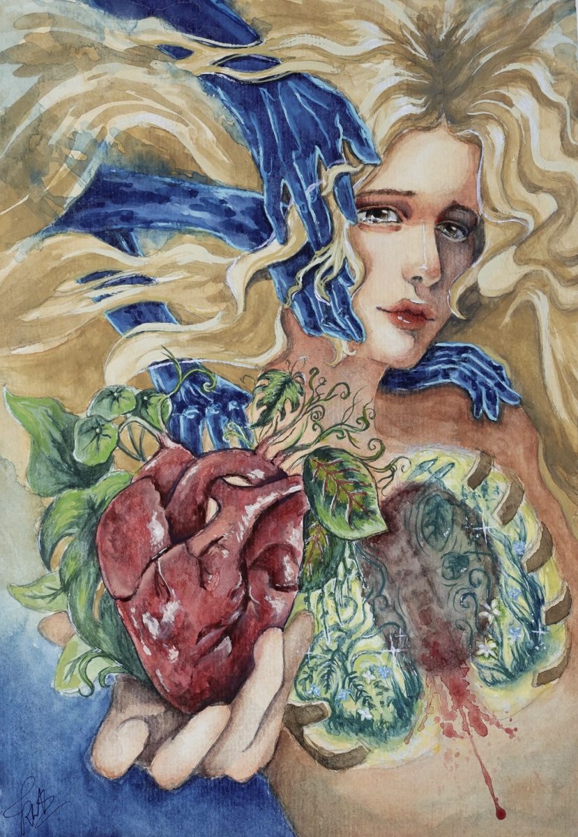 Không một lời nói, không một con chữ, nhưng có lẽ đôi mắt đã nói lên tất cả, đó là sự chờ mong, hi vọng, và có lẽ một chút buồn bã. Cô ấy nhìn tôi, nhìn bạn, với một cử chỉ giang tay ra xin chúng ta hãy nhận lấy thứ cô ấy đang cầm. Đó là nhịp đập của sự sống, của trái đất này. Và giờ đây nhiệm vụ của tôi và bạn là hãy bảo vệ nó, nâng niu nó. Mọi niềm tin và hi vọng được đặt vào bạn. Nếu như sự ra đời của sự sống là nước thì cái chết cũng là nước mà thôi. Những bàn tay vô hình của biển cả sẽ chẳng lâu gì nhấn chìm các tác phẩm của mẹ thiên nhiên vào lòng đại dương, bắt nguồn từ sự tăng đột ngột của mực nước biển. Liệu số phận của trái đất có chìm vào những tháng ngày tăm tối mịt mù khói bụi nhà máy, rác thải vô tận, chất độc hóa học,… hay không? Điều đó phụ thuộc vào hành động của mỗi con người chúng ta. Là một cộng đồng, hãy cùng nhau bảo vệ môi trường bạn nhé!
