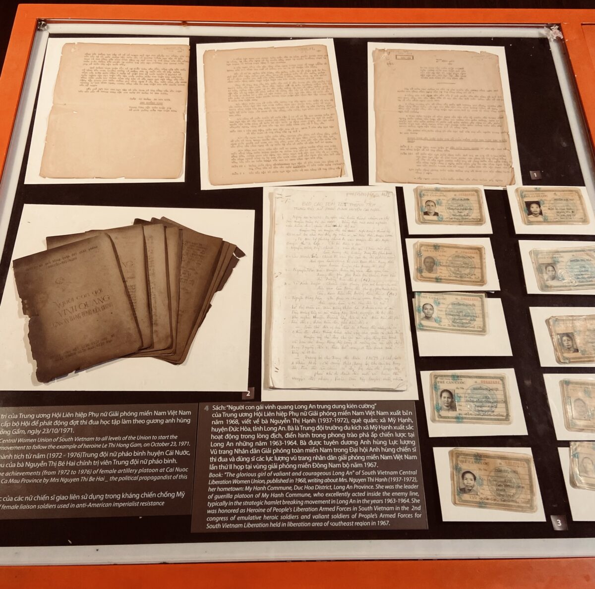 Tác phẩm 2: Những tài liệu, giấy tờ, sổ ghi chép – tượng trưng cho dấu ấn lịch sử, sự kiên cường và đóng góp thầm lặng của phụ nữ trong phong trào giải phóng dân tộc.