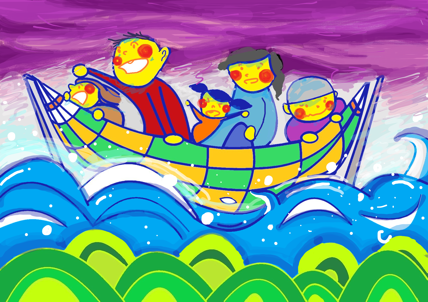 Dải đất miền Trung đầy nắng và gió. Sáng trời mới nắng ấm mà chiều đã nổi gió, mưa to trắng xóa cả trời. Với người khác thì mưa chắc nhọc lắm nhưng lũ con nít ấy mà, chúng nó thích mê. Hú hét, nhảy múa và vui mừng chào đón những giọt nước trời tươi mát quạt thẳng vào từng thớ da. Như những người thủy thủ thực thụ, chúng chèo mình trên chiếc võng đung đưa của bà, tận hưởng hương đất hòa với mùa vị mát lạnh của nước mưa và dưới nền trời xám xịt, bừng sáng những gương mặt hạnh phúc, yêu mến say mê với cuộc đời.