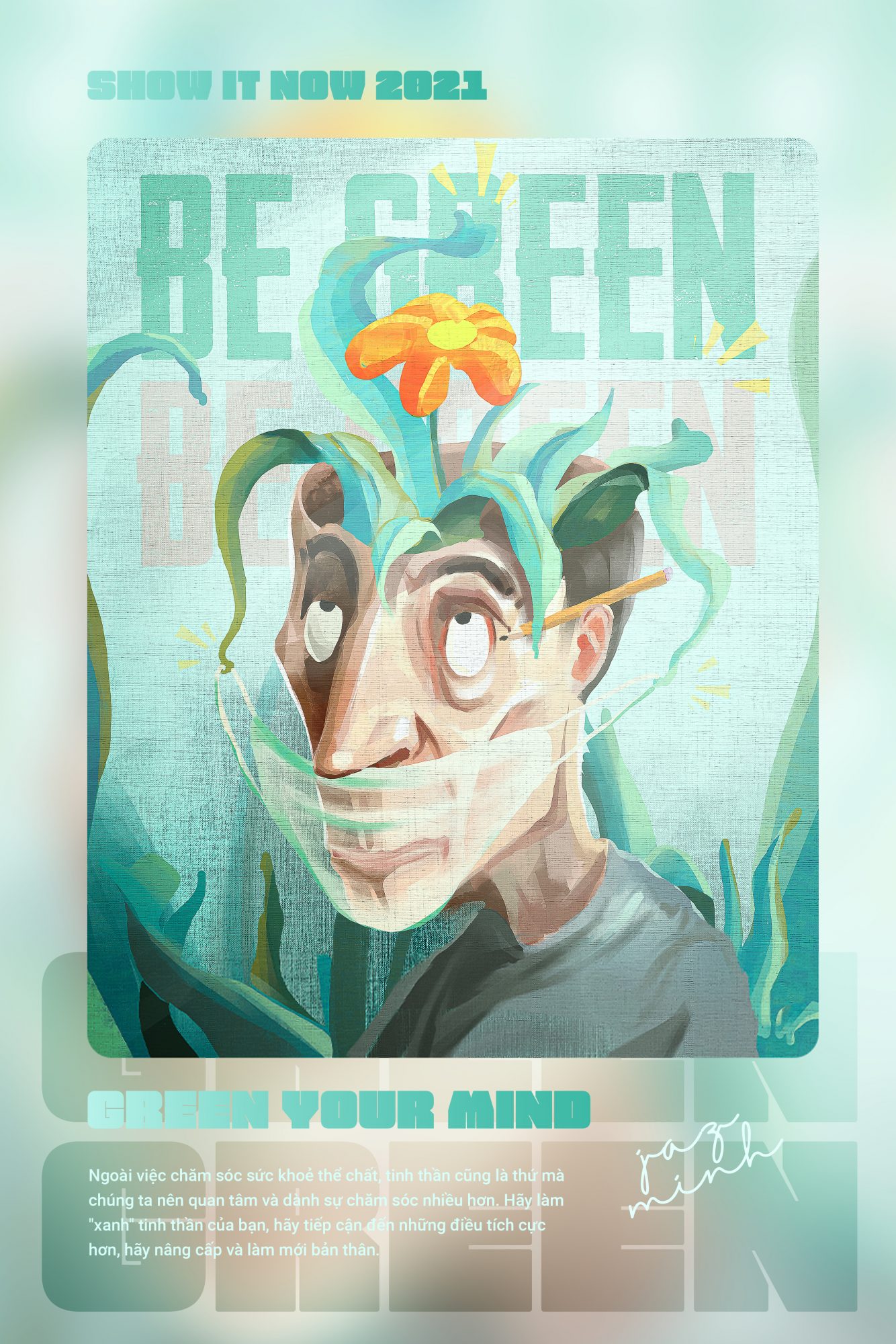 Hiện nay sức khoẻ con người đang bị đe doạ hơn bao giờ hết. Từ Covid-19 cho đến các tin tức tiêu cực trên mạng xã hội. Chúng len lỏi vào cơ thể chúng ta theo rất nhiều cách, chúng khống chế cả thể chất lẫn tinh thần. Vì vậy, việc chuẩn bị cho bản thân những kỹ năng và nhận thức để bảo vệ sức khỏe bản thân là thật sự cần thiết. Ngoài việc chăm sóc sức khỏe thể chất, tinh thần cũng là thứ mà chúng ta nên quan tâm và dành sự chăm sóc nhiều hơn. Hãy làm “xanh” tinh thần của bạn, hãy tiếp cận đến những điều tích cực hơn. Và hơn hết, hãy tận dụng thời gian giãn cách để nâng cấp bản thân, học thêm nhiều điều thú vị.
