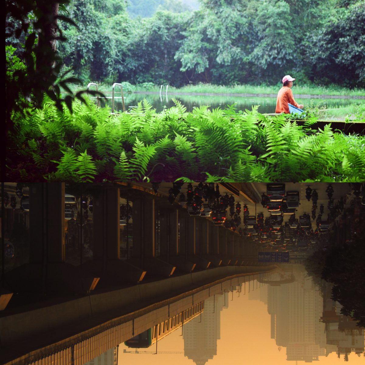 Tác phẩm “Thở / Than” của mình được ghép từ hai bức ảnh được mình chụp một cách rất ngẫu nhiên. Bức ảnh xanh rì ở trên là khoảnh khắc mình thấy trong một lần dạo chơi cùng đám bạn để tìm kiếm ý tưởng cho bài dự thi, được chụp tại rừng Cúc Phương của mảnh đất Cố đô. Cậu bé người Nhật trong hình đang ngồi chơi bắt côn trùng, xung quanh là cây cối xanh mát, nhìn em dễ chịu, thư giãn, khiến mình lúc đó cảm thấy cực kỳ bình yên và phải ghi lại khoảnh khắc đẹp đó ngay lập tức. Bức hình còn khiến bản thân mình luôn nhớ về điều đầu tiên khi bước chân vào khu rừng này, là ngay lập tức hít thở thật sâu, thật chậm, vì không khí tuyệt đối trong lành và dễ chịu. Về bức ảnh còn lại là khoảnh khắc mình chụp trong một lần một lần đi bộ tại Hà Nội. Khi dừng lại trên cầu để ngắm nhìn khung cảnh giờ tan tầm, cái nóng của Thủ đô hòa với khói bụi để lại một khoảng mờ trắng rõ rệt ở giữa ảnh – nơi tập trung của các phương tiện đi lại. Mình nghĩ đến cảm giác của những người tham gia giao thông lúc đó, cũng giống như mỗi khi mình lái xe trên đường, là “than trách và khó chịu”. Mình cảm nhận được rằng, nguyên nhân chính và là vấn đề then chốt dẫn đến những cảm giác tiêu cực đó, không gì khác ngoài thủ phạm mang tên: Bụi. Bụi mịn mang đến những vi khuẩn có hại cho cơ thể và gây ra các hiện tượng dị ứng da hay viêm mũi, khiến chúng mình cảm thấy ngứa ngáy và khó chịu. Ngoài ra, bụi mịn còn dẫn đến các bệnh nghiêm trọng về hô hấp, ảnh hưởng trực tiếp đến sức khỏe của chúng ta. Mình sử dụng hai bức ảnh đối lập này, với mong muốn truyền tải thông điệp bảo vệ và quan tâm tới môi trường sống quan trọng nhất đối với con người, đó là bầu không khí, thứ mà chúng mình cần nạp vào hằng ngày, hằng giờ, hằng giây. Để có được một sức khỏe tốt và có thể thúc đẩy được những cảm xúc tích cực, mình mong mọi người sẽ cùng chúng tay góp phần thay đổi, làm sạch chất lượng không khí từng ngày cho chính mình và quan trọng hơn, là thế hệ sau này của đất nước. “The world we leave to our children is too important, the time to act is NOW !” – B.Obama, Our Great National Parks.