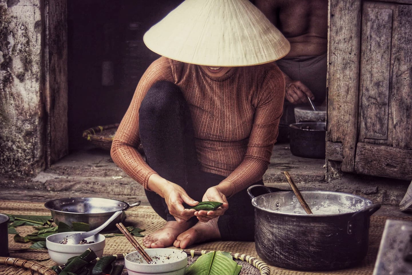 Đây là câu truyện một thời tuổi thơ của mình. Tết năm đó, mình cùng gia đình quây quần làm “bánh lá răng bừa” như trong bức hình mình chụp. Sau khi chụp xong, mình đã rất nhớ bà…. Vì kỉ niệm mà mình có, đa phần đến từ món bánh này với bà cố và vào những ngày Tết. Bà cố rất sợ mình đói, luôn lo lắng và nuông chiều mình. Món bánh này, có thể có nhiều người biết hoặc chưa biết. “Bánh lá răng bừa” là một trong những đặc sản xứ Thanh gắn liền với điển tích có thật trong lịch sử nước Việt. Để tưởng nhớ công lao của vị vua Lê Đại Hành khi đã đích thân xuống ruộng cày bừa trong lễ hội đầu năm, nên người dân quê mình đã làm chiếc bánh lá răng bừa để tiến vua. Lý giải cái tên “bánh lá răng bừa”, người nông dân đã lấy chính hình ảnh một bộ phận của chiếc bừa – công cụ lao động quen thuộc hằng ngày để đặt tên cho bánh. Mình lớn lên và trông thấy đôi tay của 3 đời nhà mình làm bánh. “Vị” của mỗi người làm mỗi khác, vì trong quá trình làm bánh. Từng công đoạn dù nhỏ nhoi như khuấy bột, băm thịt hay phết bánh lên tàu lá chuối đều cần tỉ mỉ. Mà… không ai làm ngon như bà cố mình cả. Dù bà cố có truyền lại công thức cho đời sau đều khó mà giống được…. Hương bồ kết từ tóc bà cố lúc dẫn mình đi xin lá chuối, mùi bột mà bà khuấy bánh..Vị từ chiếc bánh bà cố tỉ mỉ, chăm chút làm cho mình ăn, vị của yêu thương, nuông chiều…. Sắc xuân ấm áp mà bà cố dùng đôi tay ôm lấy mình mỗi khi tết về. Ấm áp ấy… mình không biết tìm lại ở đâu. Cảnh mình chụp trong hình là một trong những công đoạn làm nên chiếc bánh tuổi thơ ấy. Cả nhà mình đang cùng nhau làm bánh để cúng bà cố. Lúc đó mình chụp cũng chỉ để lưu giữ nhưng bây giờ nhìn lại thấy nghẹn lòng vì nhớ. Vị của quê hương….Cháu yêu bà cố nhiều lắm.