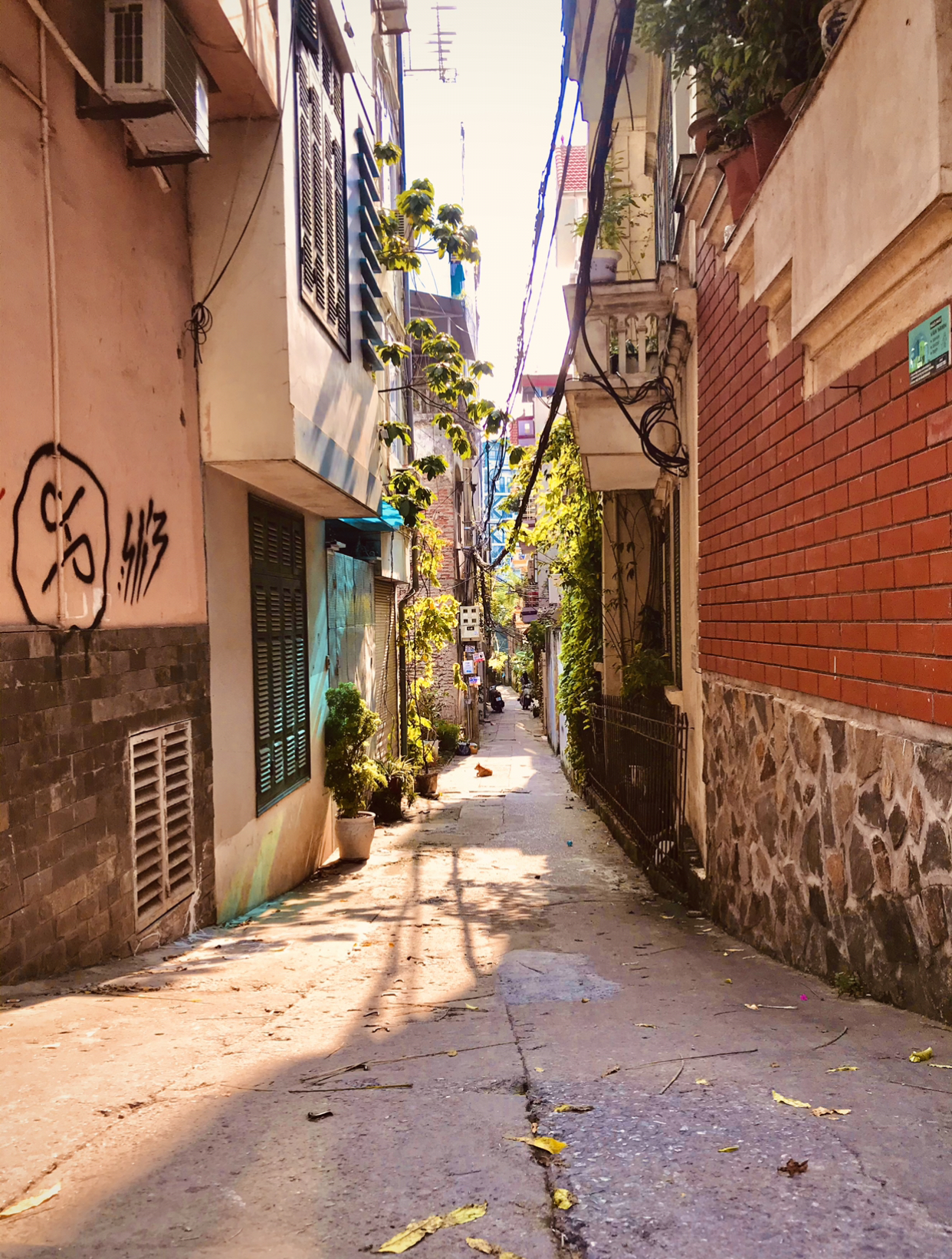 Sắc: Con ngõ đẹp – mình không phủ nhận điều đó, chính vì thế mình mới chụp lại chứ! Nó đẹp theo một cách lạ lắm, hoài cổ mà trong vắt. Nó là một trong những con ngõ “ đặc trưng “ của Hà Nội làm bạn có thể đi lạc trong đó… nhưng trong một khoảnh khắc nào đó, bạn bị cuốn đi bởi nó, bạn sẽ muốn dừng lại và ngắm nó thật sâu, thật lâu… Con ngõ nhỏ ấy như xoa dịu cảm xúc qua một ngày làm việc mệt mỏi: Đó là yên… Đó là phút lắng đọng, thảnh thơi của bất cứ người nào sau ca làm, còn gì hơn là ngắm một cảnh đẹp đáng quý giữ đất thủ đô không ngừng thay đổi này?