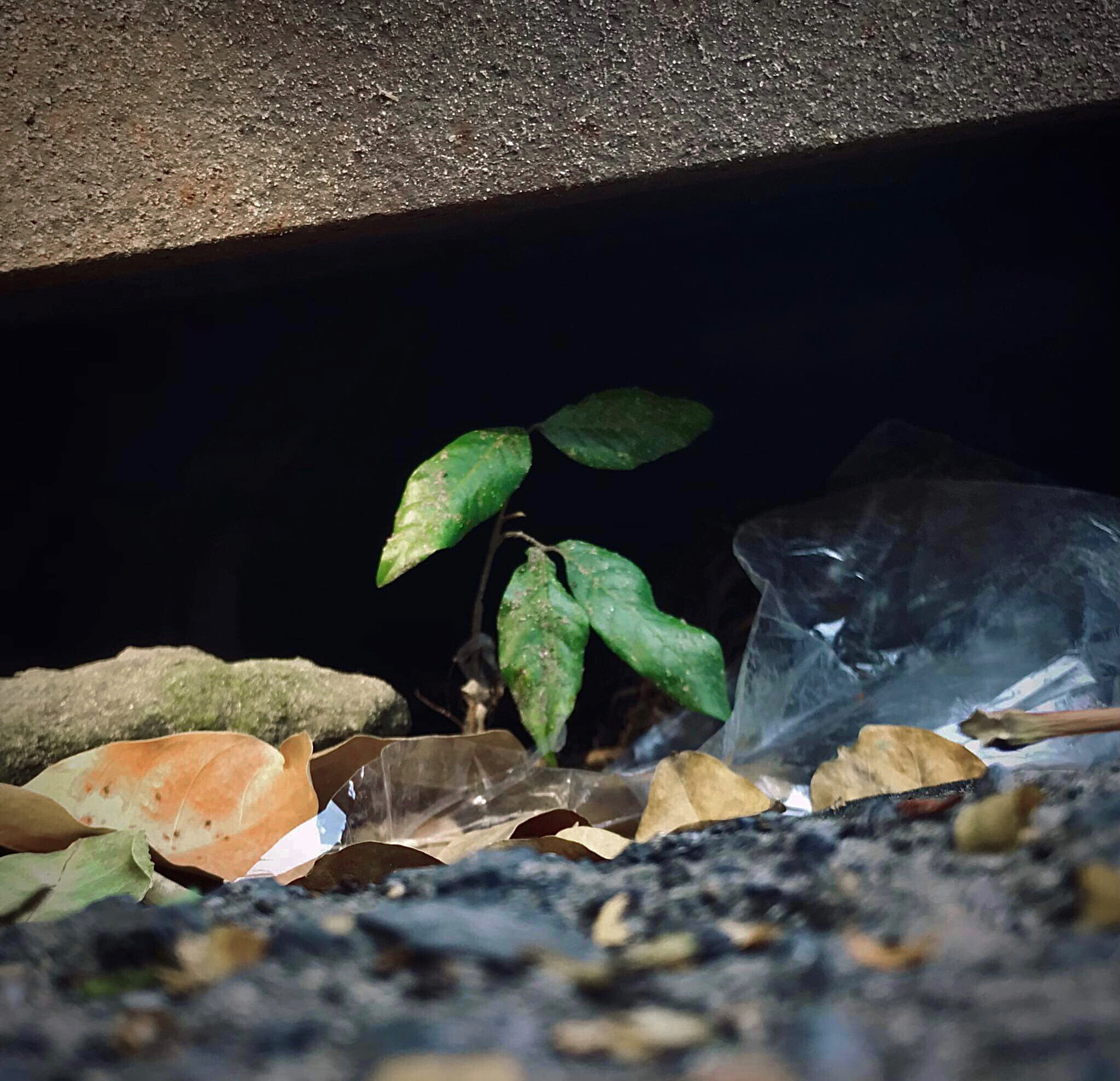 Bức ảnh như tiếng thở thoi thóp của thiên nhiên trên nền hiện thực. Góc nhìn thẳng vào hiện thực giờ đây đã bị che mờ đi bằng tấm bịt mắt đen ngòm của ống khói nhà máy công nghiệp. Chính vì thế, một cái nghiêng mình, một góc nhìn chệch hướng, lấy bố cục chéo làm điểm nhấn càng tăng thêm sự ngột ngạt của không gian cây non sinh sống. Cây xanh non rủ xuống, như đang dần lạc lối giữa ranh giới ấy. Một đời sống xanh non mơn mởn đang đợi chờ thoát xác, hay lịm đi trước thực tại đã bị tước đoạt bởi không gian ô nhiễm đầy rác thải ngổn ngang. Bức ảnh không đưa ra lời khẳng định chắc nịch cho số phận của thân cây non nớt, cũng chẳng thể đưa ra suy đoán về sự lựa chọn của chính nó cho số phận của mình. Góc nhìn lệch đi với quy chuẩn của thực tại chỉ để thỏa mãn cái bản năng tò mò ngó nghiêng của con người, để rồi bất chợt say sưa với những mầm sống diệu kỳ khi đã quá bão hòa trước lối sống đầy công nghiệp. Một cảnh thường, sự vật cũng thường theo nhưng sự giật mình của tâm thức, hay cái ái ngại lo âu cho tương lai của chính mình và thế hệ con trẻ lại chẳng hề tầm thường như thế. Suy ngẫm thế nào, hành động ra sao, có lẽ chỉ chúng ta mới biết, cũng chỉ có bản thân nhân loại mới có thể đưa ra câu trả lời thỏa đáng mà thôi.