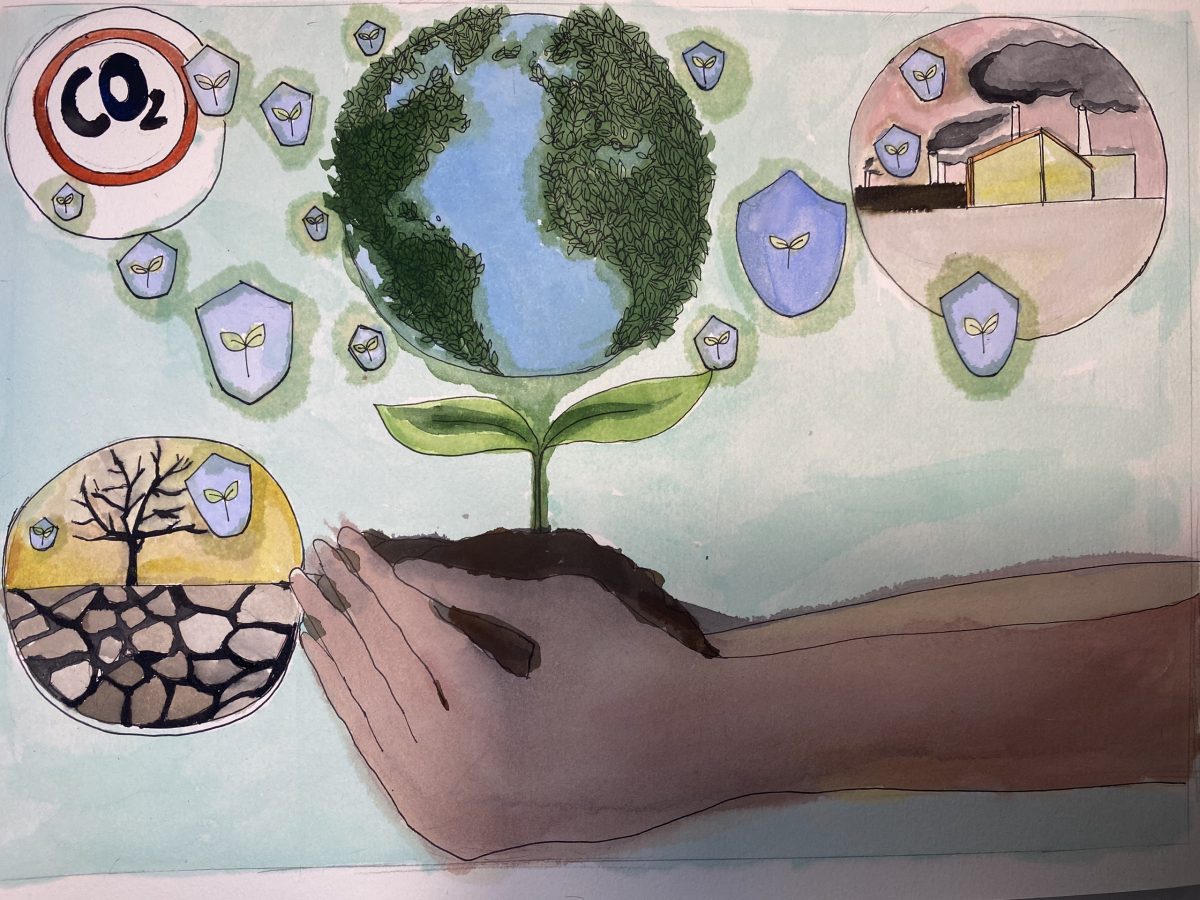 Bài vẽ tay mầm cây mang hy vọng bảo vệ Trái Đất