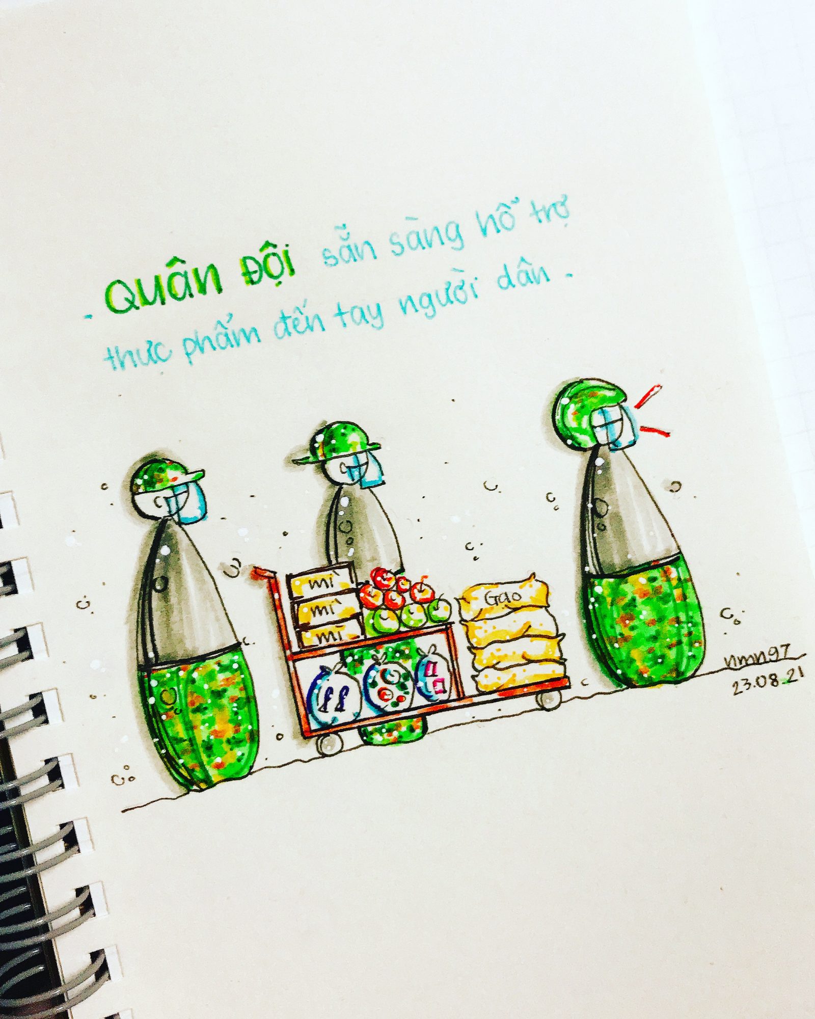 Xin chào, mình là Minh Nhựt, một cựu sinh viên của trường Đại học Kiến trúc TP Hồ Chí Minh. Mình thích vẽ và vẫn giữ thói quen vẽ một bức tranh mỗi ngày kể cả khi mình tham gia công tác tình nguyện chống dịch, những bức tranh này nằm trong một “chùm” tranh của mình mang tên “Sài Gòn chia nhau thở”.