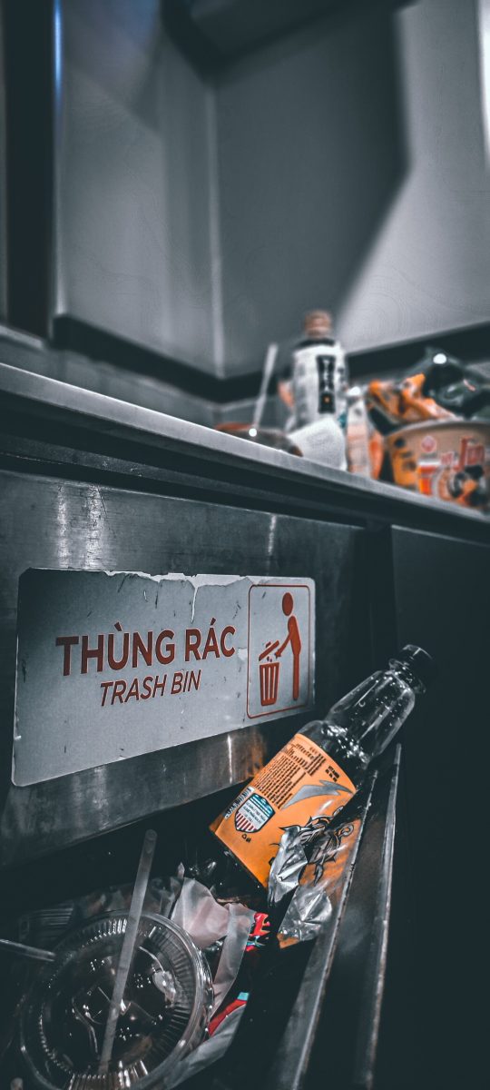 Tác phẩm thể hiện sự tàn quá quá mức của con người đối với thiên nhiên khi con người đã ngày càng tạo ra nhiều rác thải thì cũng đồng nghĩa thiên nhiên đang ngày càng bị tàn phá nghiêm trọng Từ xưa nhu cầu và công nghệ kỹ thuật chưa phát triển nhiều nên vấn đề rác thải vẫn đưa đến mức nghiêm trọng thì ngày nay dân số gia tăng nhu cầu về ăn uống cũng như sinh hoạt thường ngày gia tăng thì hiện nay vẫn đề rác thải và ô nhiễm môi trường đã trở nên nghiêm trọng con người chỉ chú trọng tạo ra sản phẩm tiêu thị chứ ko đặt nặng vấn đề sử lý hậu qua do những ngành công nghiệp đó sản sinh ra rác thải khí CO2 hiệu ứng nhà kính ngày cành nghiêm trọng do sự thiếu kiểm soát của con người trong việc chỉ lo khái thách mà không lo vấn đề phục hồi làm cho rác và hiệu ứng nhà kính ngày càng mất kiểm soát Bức ảnh thể hiện rằng con người vẫn chưa cân bằng giữa việc khai thác và phục hồi, rác trong thùng thì vẫn cứ đầy còn công cụ để tối ưu tái chế rác thì vẫn còn quá kém sự chênh lệch đã tạo ra sự mất cân bằng cho môi trường như hiện nay.