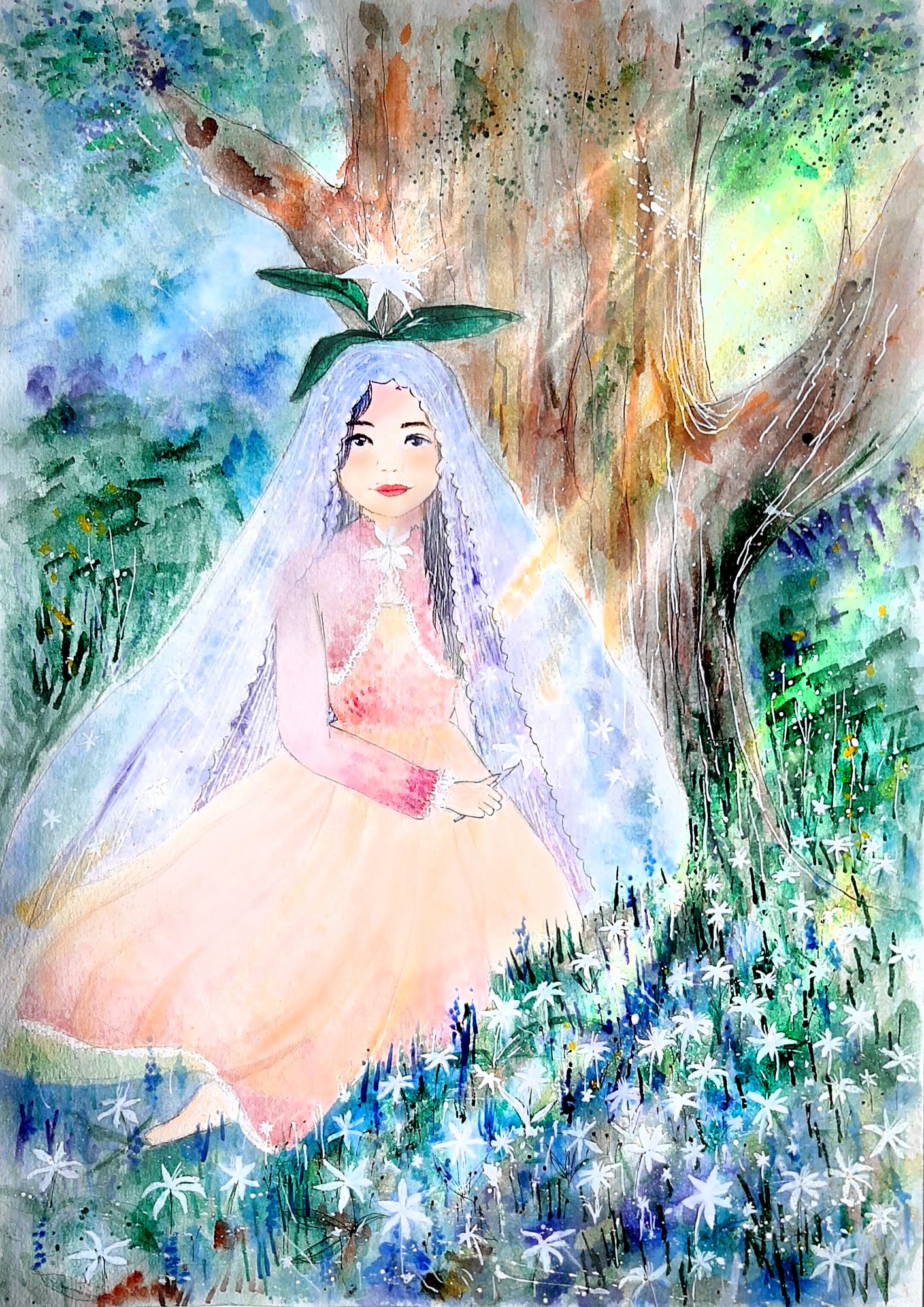 Loài hoa mà mình vẽ có tên tiếng Anh là Queen’s Cup, dịch ra tiếng Việt là chiếc cốc của nữ hoàng. Chúng màu trắng, nhỏ và mọc ở trong rừng. Dù không rực rỡ như những loài hoa khác, nhưng sự trong sáng và thuần khiết khiến chúng xinh đẹp lạ thường.