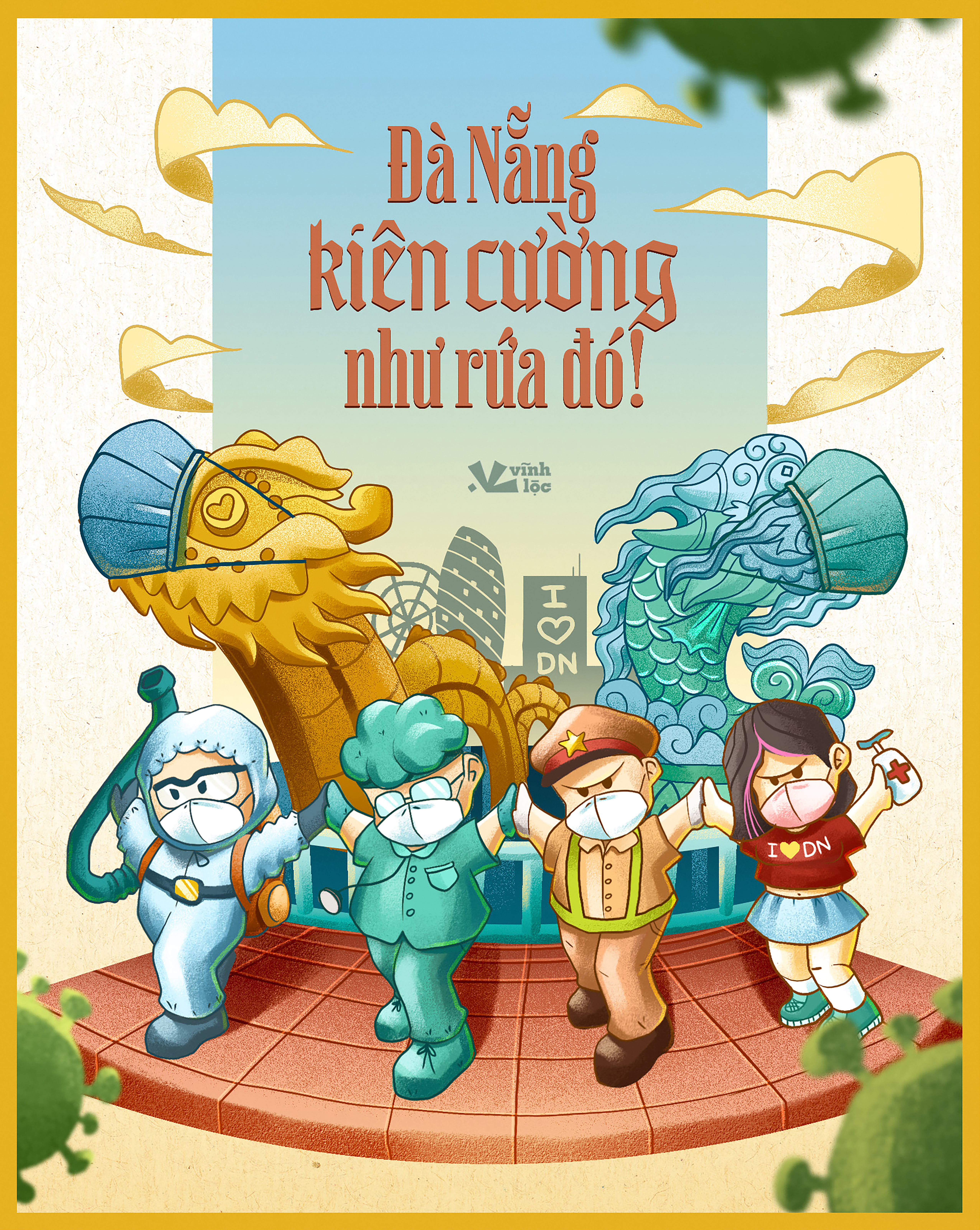 Ý tưởng bài dự thi dựa trên 4 mảnh ghép đoàn kết, tạo nên lá chắn giúp chúng ta đánh bay COVID: Các bác sĩ tuyến đầu, y tá, cơ quan phòng chống COVID, cơ quan chức năng ngày đêm canh chốt và đặc biệt là ý thức của mỗi người dân chúng ta. Hãy luôn nêu cao tinh thần: “Đoàn kết là sức mạnh”, hãy luôn kiên cường, rồi chúng ta sẽ thắng dịch thôi!