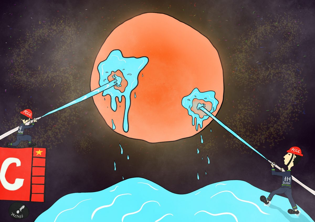 “Global Warming” – Hiện tượng nóng lên toàn cầu đang là vấn đề cấp bách ảnh hưởng đến đời sống của chúng ta và tương lai sau này của thế hệ sau. Mình mượn hình ảnh hai chú cảnh sát PCCC đang dập một quả cầu nóng hừng hực nhằm ví như con người chúng ta cần phải có một ý thức cao hơn, nhằm mục đích bảo vệ chính chúng ta và bảo vệ tương lai của thế hệ sau này. Hãy vì một hành tinh “Xanh – Sạch – Đẹp”, vì tương lai của toàn nhân loại. “Save the Earth, Save yourself”.