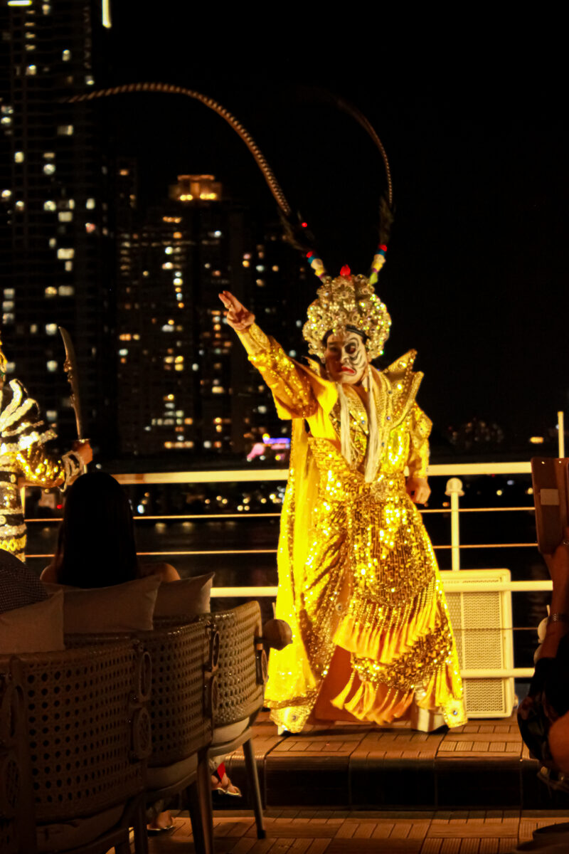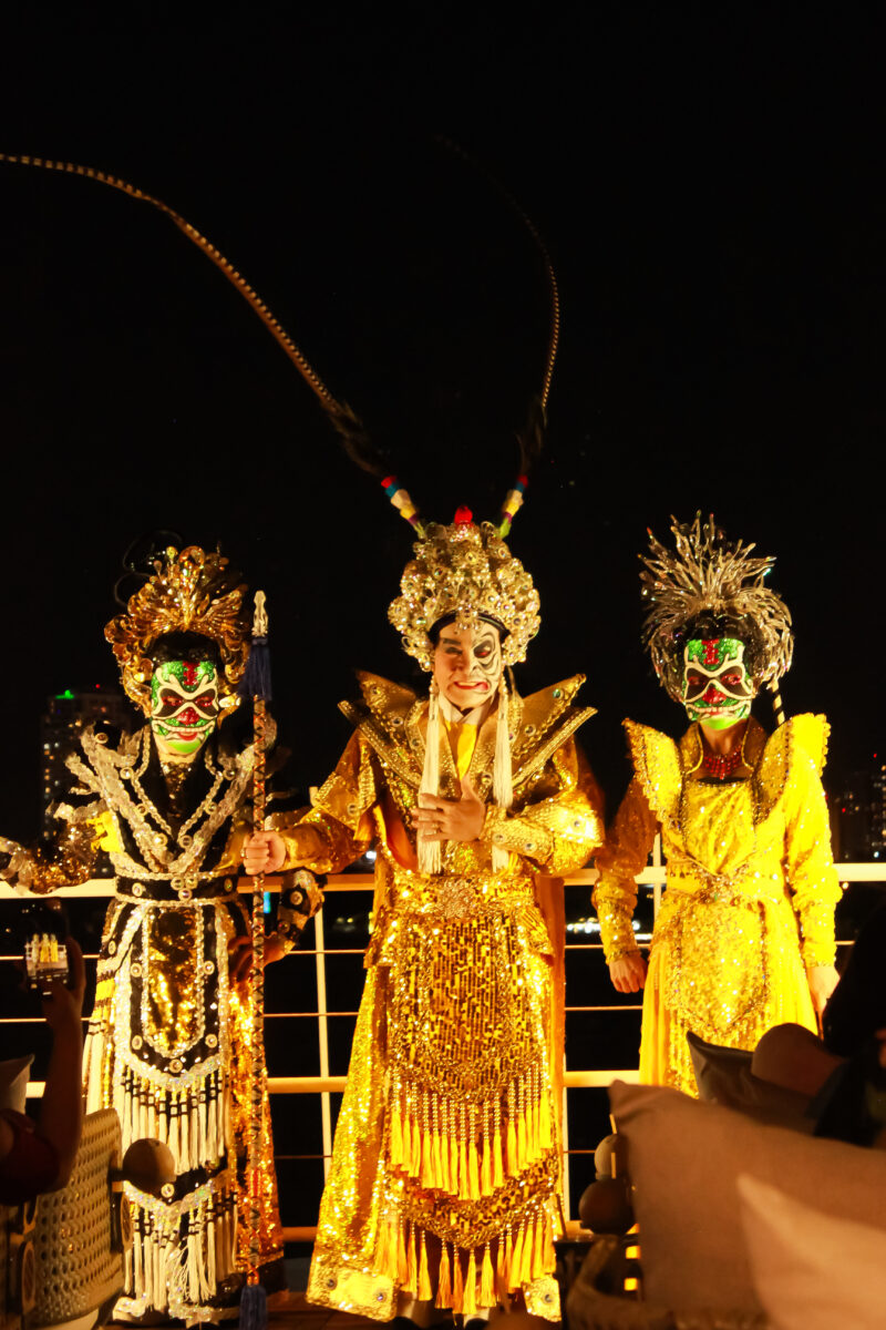 Giữa dòng chảy nhộn nhịp của Sài Gòn về đêm, mình có dịp được ngồi trên thuyền và thưởng thức một trích đoạn hát bội. Chỉ kéo dài vỏn vẹn 15–20 phút, nhưng từng ánh đèn, âm thanh, và sự lấp lánh từ phục trang đã khiến khung cảnh trở nên huyền ảo, khó quên.