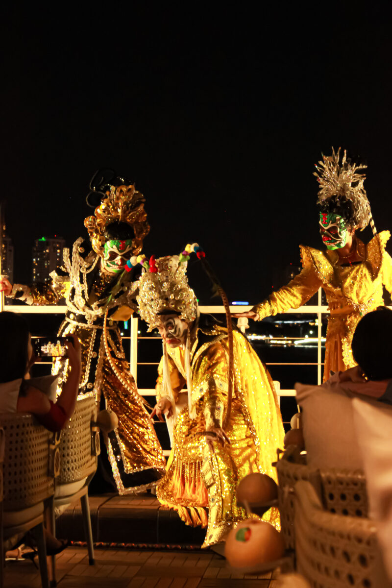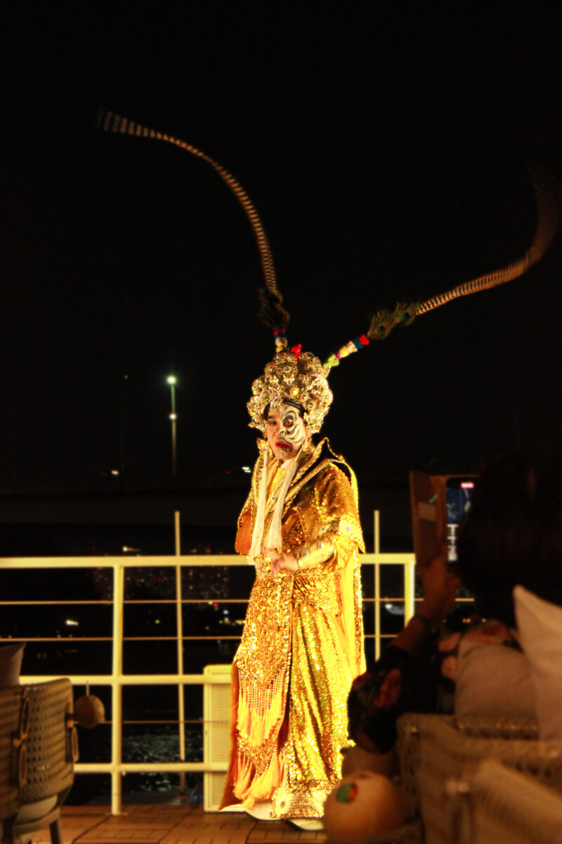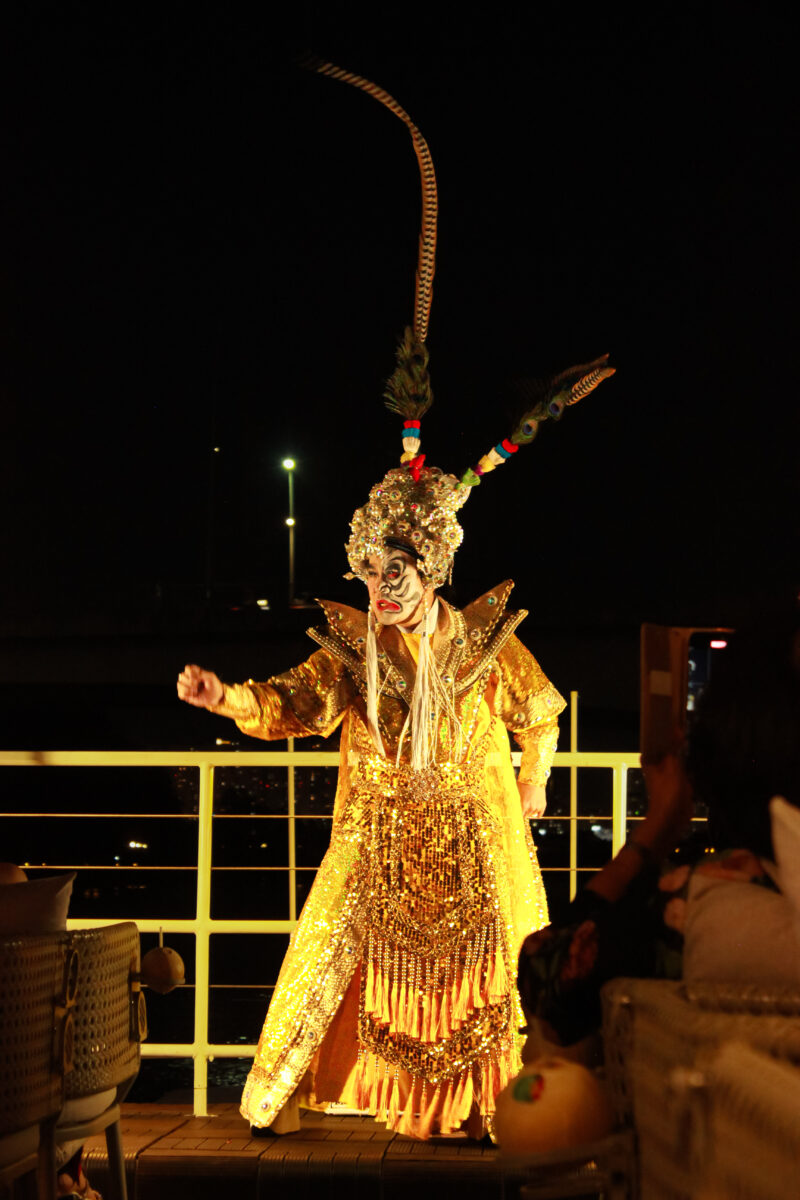 Khoảnh khắc nghệ sĩ cất tiếng hát, từng động tác dứt khoát trên sân khấu nhỏ giữa sông như mang mình quay về với nét văn hoá truyền thống xa xưa, nhưng lại sống động ngay giữa lòng thành phố hiện đại.