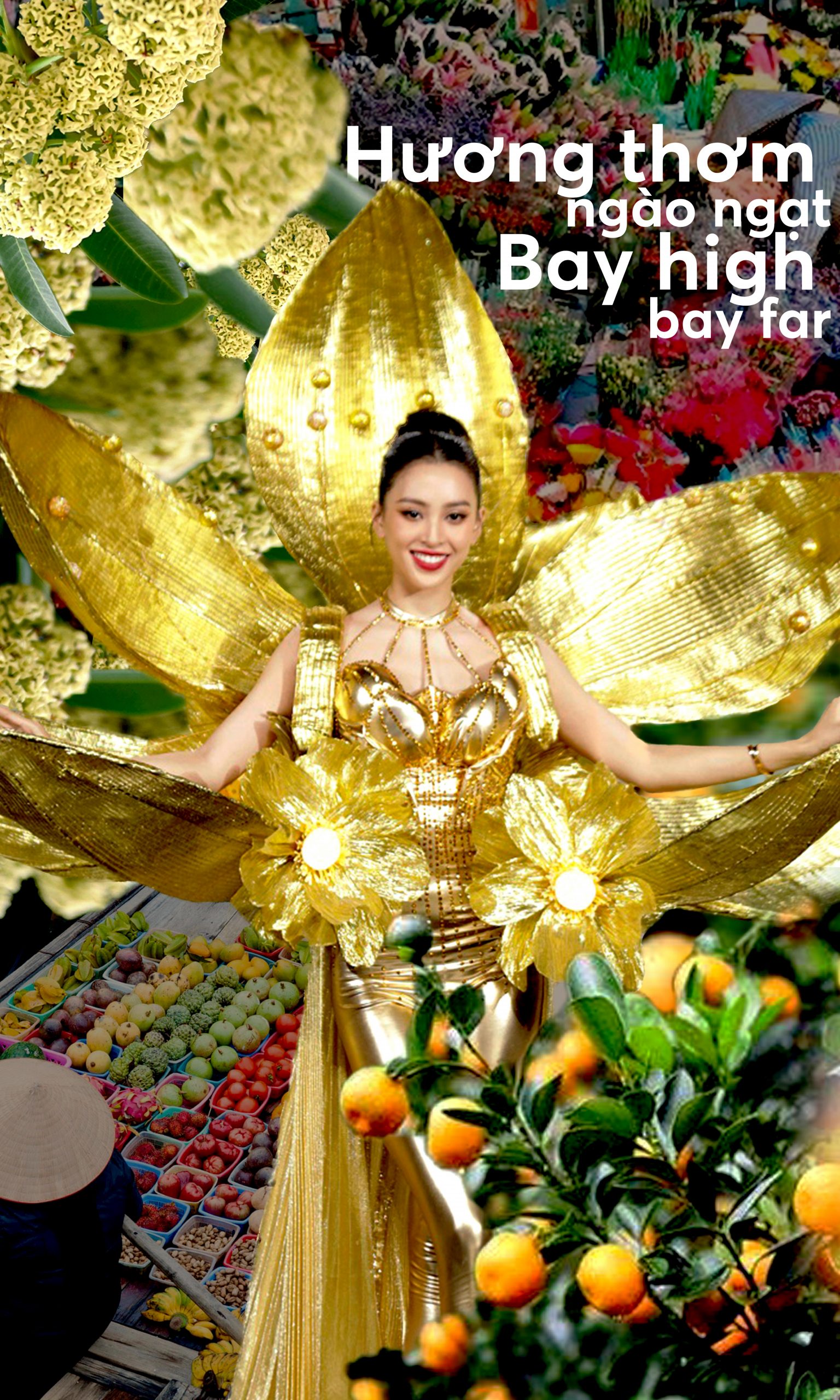 Bên cạnh đó loài hoa biểu tượng không thể không nhắc đến chính là bông sen Việt Nam, điển hình như bông sen vàng – biểu tượng của sự bình an và may mắn được dùng làm nguồn cảm hứng cho trang phục “Sắc liên hương” trong cuộc thi hoa hậu hòa bình năm 2022.