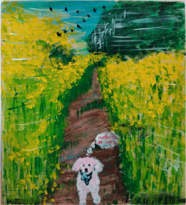 Tác phẩm được lấy cảm hứng dựa trên câu chuyện về một chú chó được cứu thoát khỏi lồng sắt, nơi chú ta đã bị giam cầm trong một thời gian dài. Chú ta đã trải qua những ngày tháng vô cùng đau khổ và tuyệt vọng. Bối cảnh của tác phẩm là một khu rừng xanh mát, đại diện cho sự bảo vệ, nâng niu, đem lại cảm giác an toàn cho chú chó. Màu vàng chủ đạo làm bức tranh thêm sự ấm áp của tình người đem lại cho chú chó niềm vui sau khoảng thời gian bị nhốt. Tác phẩm tái hiện lại sự tự do, tìm lại niềm vui trong cuộc sống của chú chó khi được chạy nhảy tung tăng hít thở trong khu rừng. Sự thoải mái, niềm vui hân hoan của chú chó là một minh chứng cho tầm quan trọng của tự do và sự gắn kết giữa con người và thiên nhiên. Trong thế giới bộn bề này, thiên nhiên là nơi tìm về của không ít những người muốn lấy lại sự yên bình trong tâm hồn. Tự do là quyền cơ bản của mỗi con người, cũng như của mỗi loài vật. Chúng ta cần phải biết trân trọng và bảo vệ tự do của bản thân và của những người xung quanh. Bức tranh đã thể hiện những thông điệp ý nghĩa về tầm quan trọng của tự do, sự gắn kết giữa con người và thiên nhiên, và sự cần thiết phải bảo vệ môi trường. Bức tranh là một lời kêu gọi mọi người hãy trân trọng những gì mình đang có và chung tay bảo vệ môi trường để xây dựng một thế giới tươi đẹp hơn.