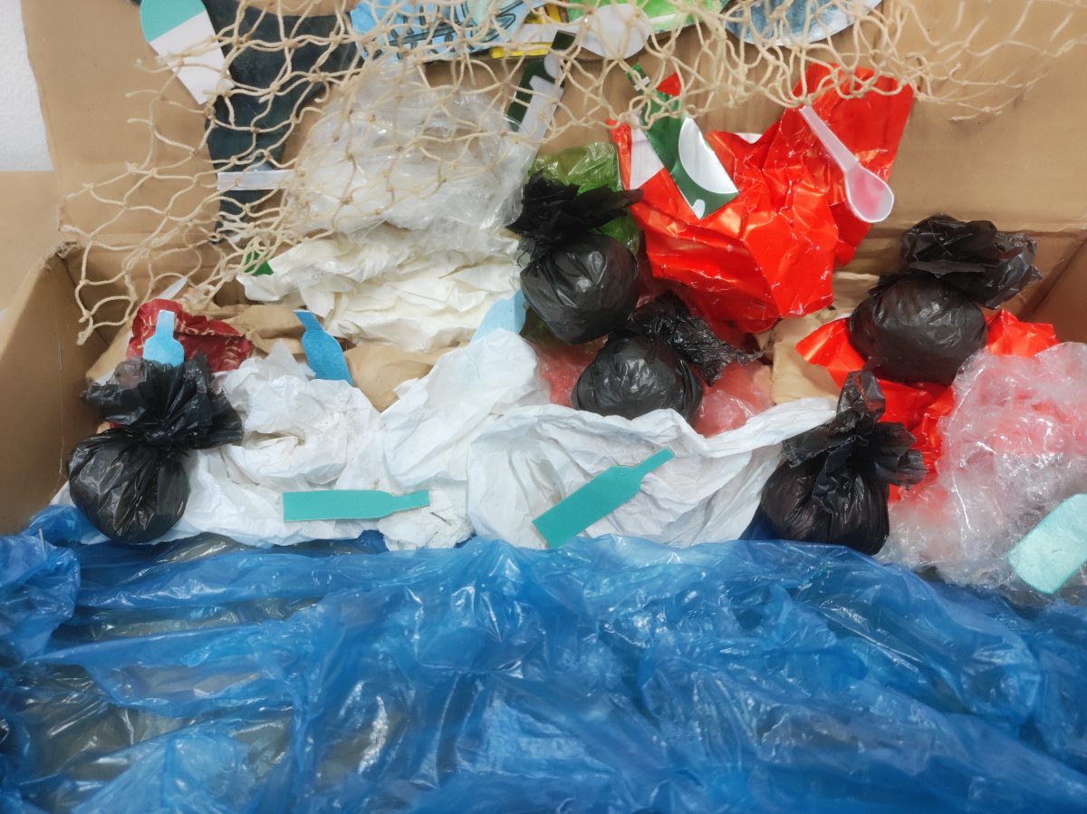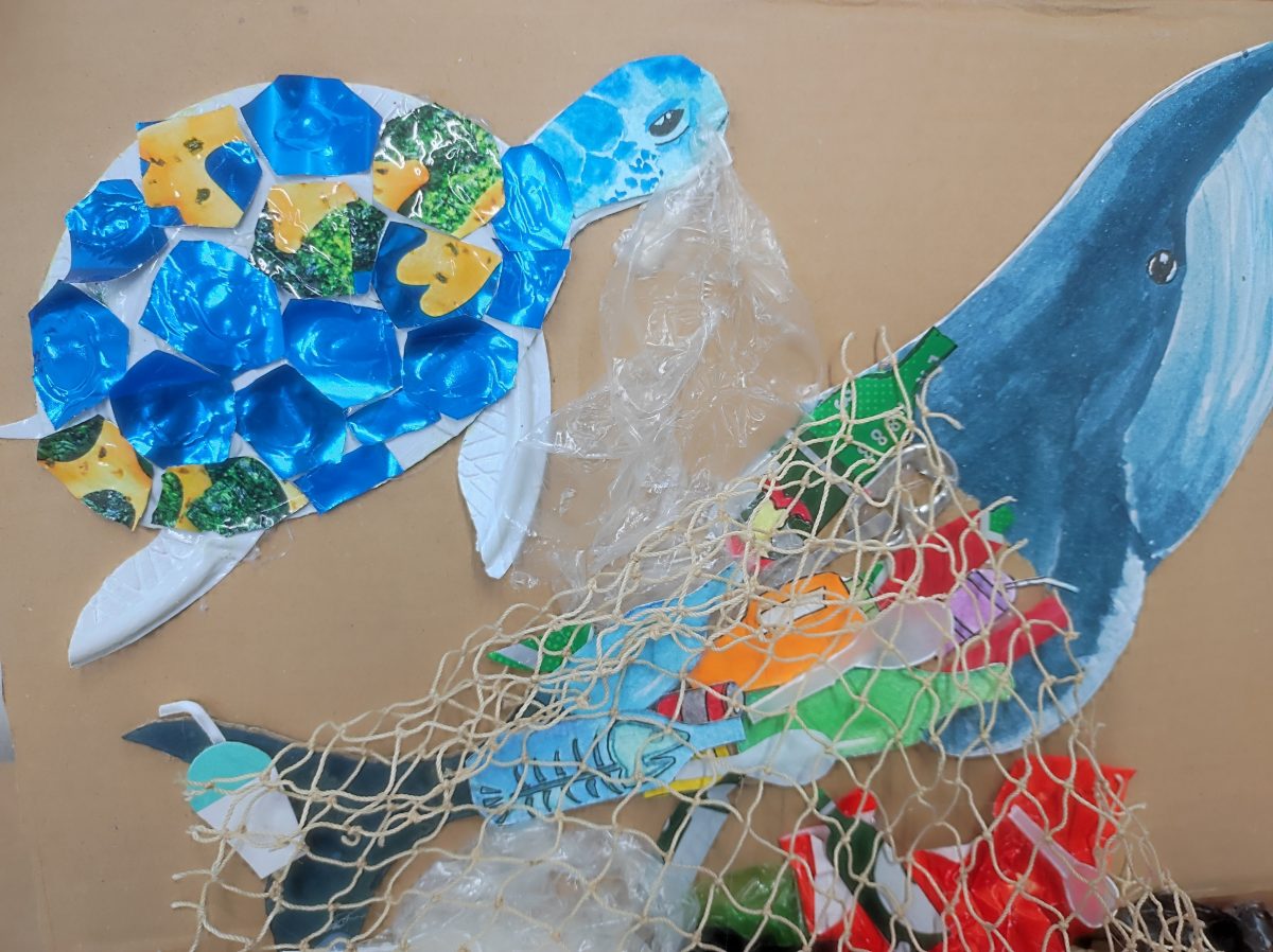 – Em đã thu gom rác thải và tạo hình lại thành một sản phẩm để trưng bày