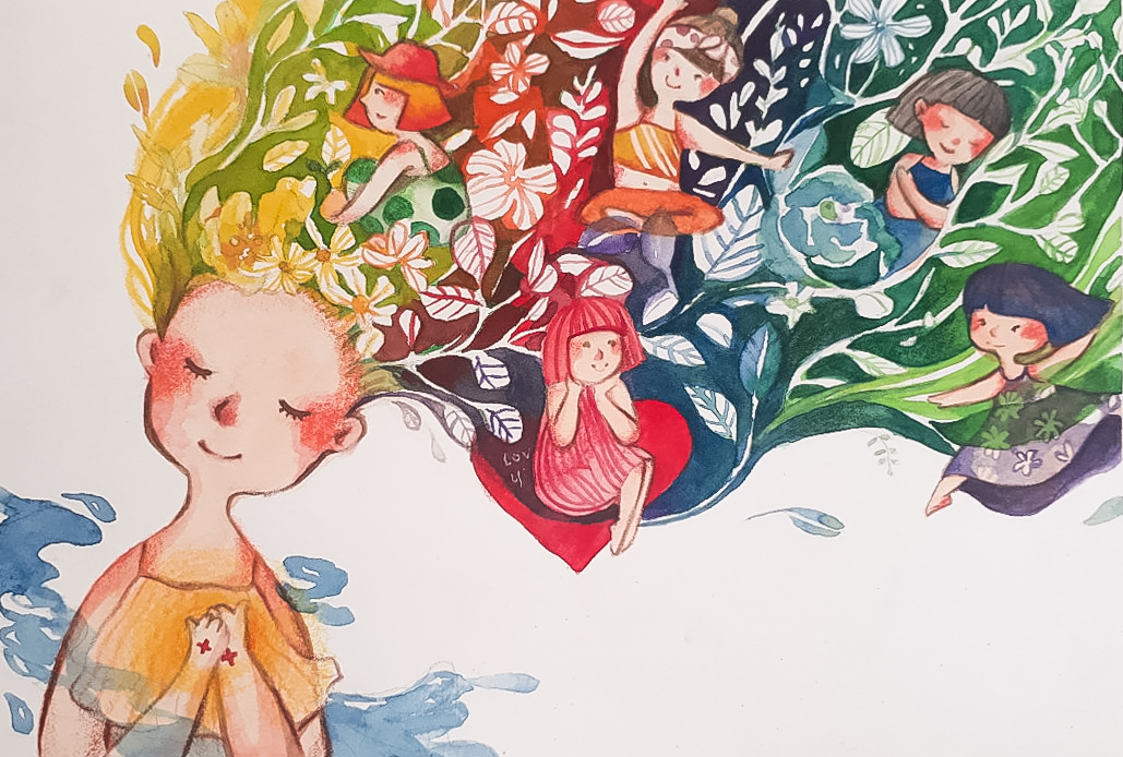 Bản thân là một người khá tiêu cực và tự ti, em chọn cách vẽ và gam màu vui tươi để khích lệ, động viên bản thân cố gắng cải thiện từng ngày.