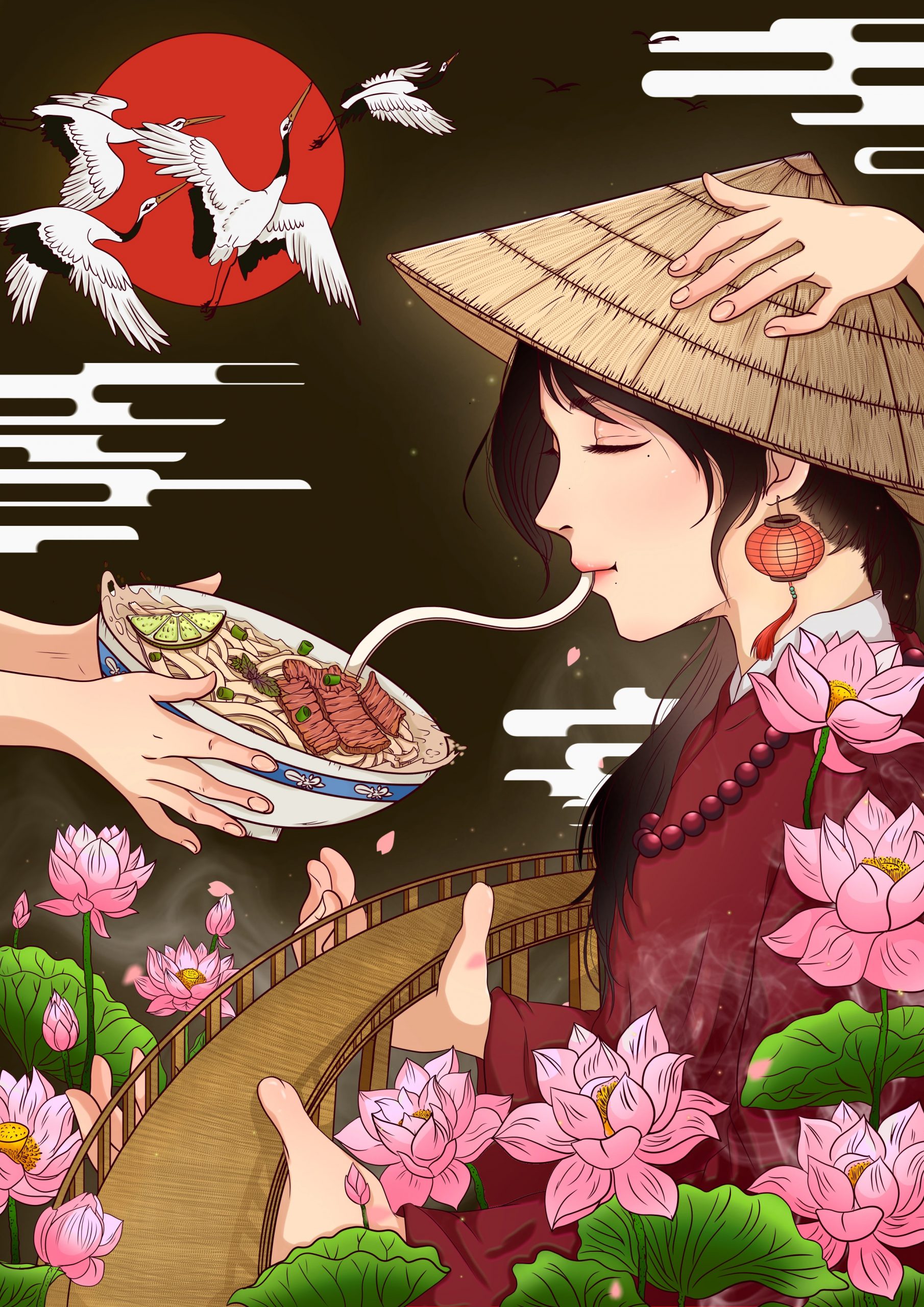 Hương Hoa, Tuyệt Sắc, Mĩ Vị là một tác phẩm gói gọn tất cả vẻ đẹp tinh túy của Việt Nam trong suy nghĩ của em. Một nàng thiếu nữ trong trang phục truyền thống, đầu đội nón, thưởng thức món phở bò hấp dẫn giữa một không gian ngào ngạt hương hoa. Qua đó hình ảnh chiếc cầu vàng, một trong những địa điểm du lịch nổi tiếng của nước ta cũng đã được em lồng ghép vào bức tranh một cách hài hòa.