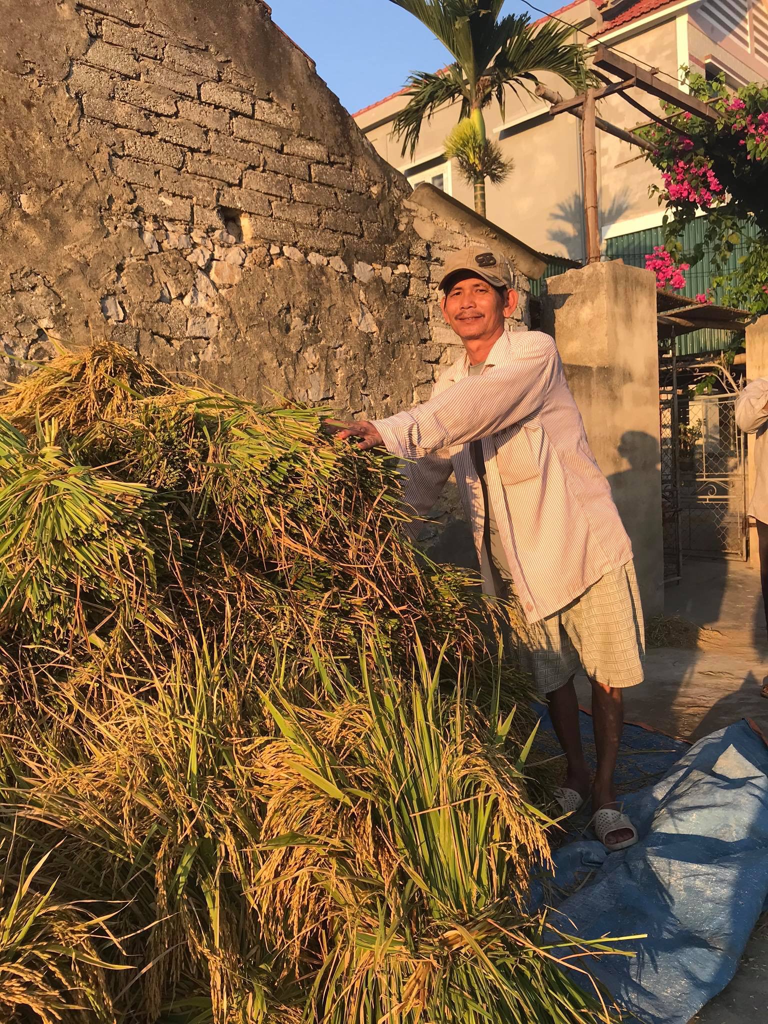 Mỗi người sinh ra đều mang trong mình một dòng máu từ một vùng quê nào đó, còn tôi sinh ra ở vùng quê Quỳnh Lưu đầy nắng và gió. Vùng quê của chúng tôi đa số là nông dân, họ sống bằng nghề trồng lúa nước. Từ đó tôi bắt đầu lấy ta tưởng từ cây lúa để khêu gợi cảm xúc tự hào cho mỗi người dân Việt Nam. Bức ảnh đầu tiên các bạn đc thấy là một cô bé đang thả hồn vào những bông lúa chín vàng đã cho ta cảm nhận đc tình yêu quê hương của bất cứ ai. Cho dù họ ko sinh ra ở nơi có ruộng lúa rì rào hay đồng cỏ bát ngát thì họ vẫn tự hào quê hương họ vì ở đó họ cảm thấy bình yên. Bức ảnh thứ 2, 3,4 tôi muốn nói đến là sự mệt mỏi của người nông dân vào những ngày mùa nhưng nụ cười vẫn nở trên môi họ. Dường như càng mệt họ lại càng cảm thấy vui và tự hào với chính quê hương mình hơn. Và cuối cùng là cảnh hoàng hôn của 1 ngày mùa trên cánh đồng lúa. Hoàng hôn bỗng đẹp biết bao khi hoàng hôn dần xuống trên quê hương tôi! Tôi lại thấy tự hào xiết bao miền quê trù phú này.