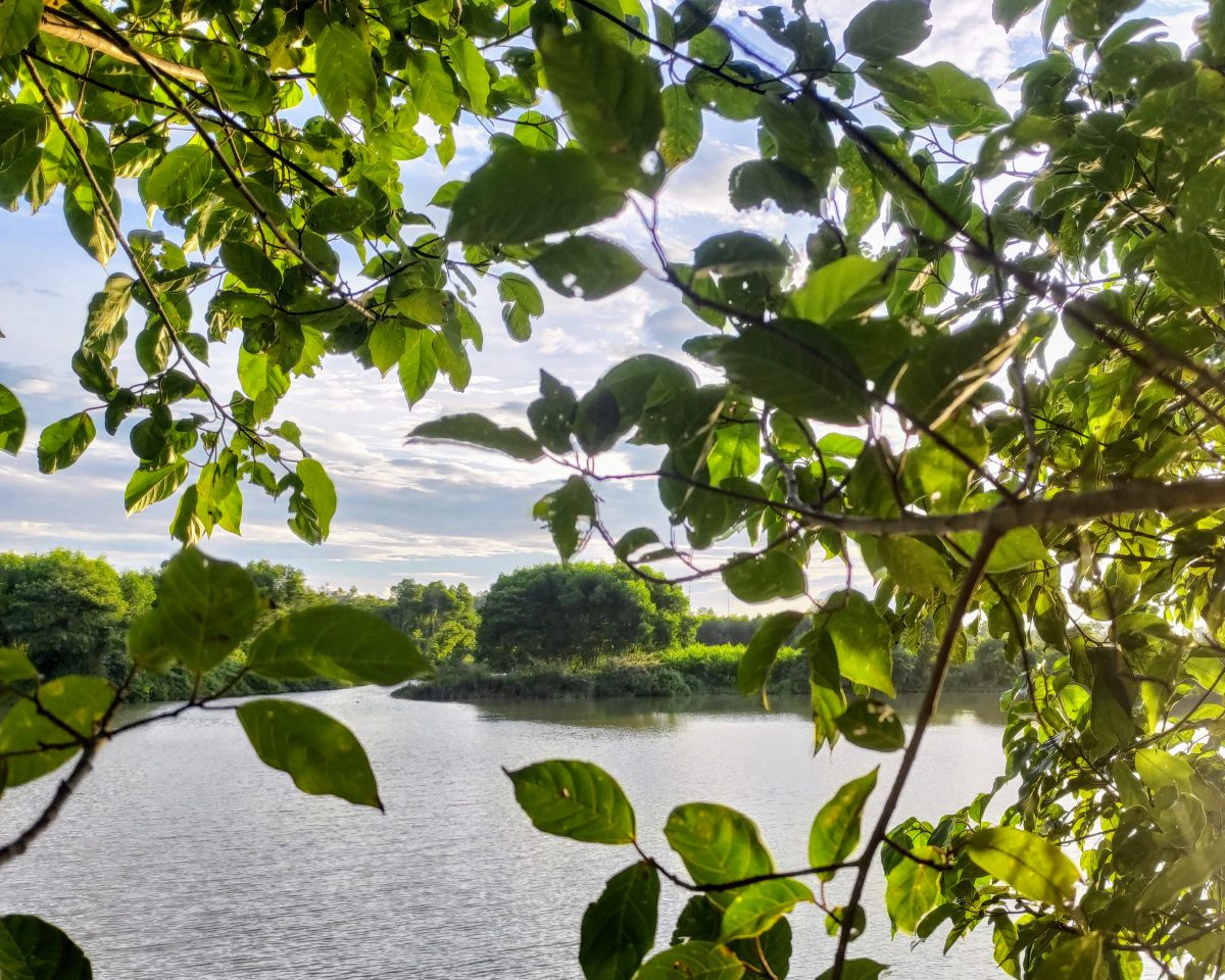 Sự tĩnh lặng của sông thường được biểu thị bởi dòng nước chảy chậm và êm đềm. Nước dường như di chuyển một cách từ từ, không gây tiếng động hay sóng nổi. Ánh nắng mặt trời chiếu qua dòng nước, tạo ra một loạt ánh sáng mắt chói, như những tia kim cương rải rác trên bề mặt. Bờ sông thường có cây cối và thảm cỏ xanh mướt, tạo nên một khung cảnh tươi đẹp và trong lành. Các cây sát bờ nước thường phản chiếu vào mặt nước, tạo ra một hình ảnh gương rất sáng và mềm mại.