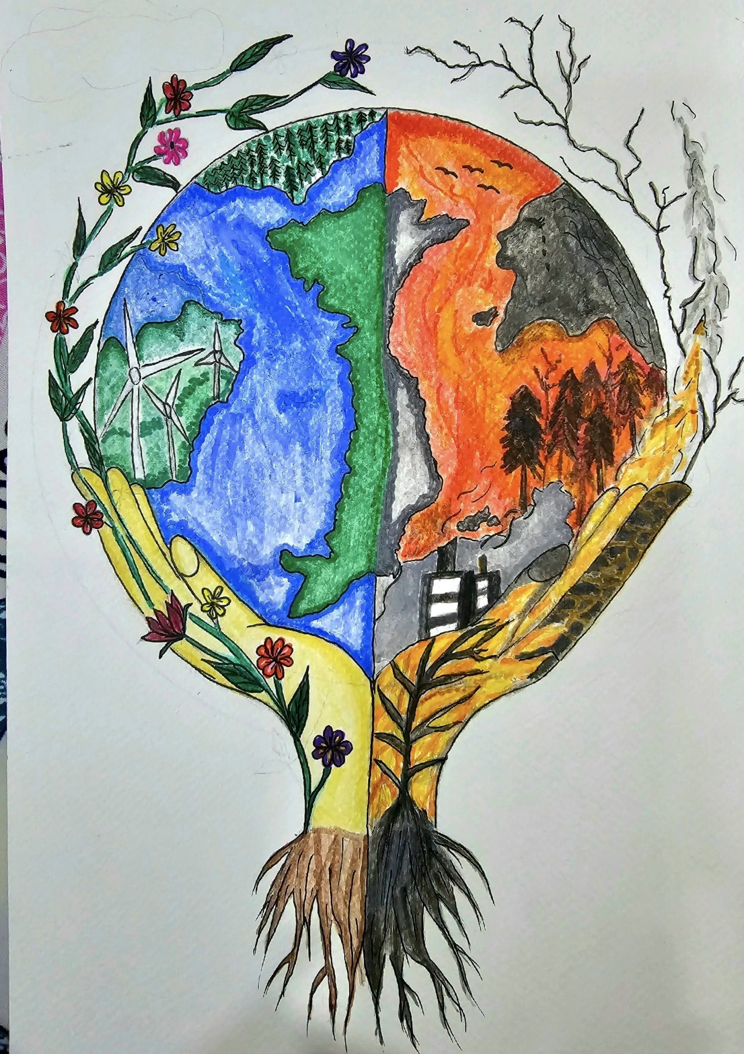 Bức tranh được lấy ý tưởng từ rễ cây tượng trưng cho sự sống của con người trong trái đất được liên kết với đôi bàn tay thể hiện mọi việc làm đều xuất phát từ đôi tay của chúng ta. Bàn tay đẹp là bàn tay biết giữ gìn thiên nhiên tươi đẹp, biết bảo vệ những tạo vật tốt đẹp của tạo hoá, trái đất xanh sạch đẹp đồng nghĩa với việc tính mạnh con người được bảo toàn, tươi sáng. Ngược lại bàn tay xấu là bàn tay phá hoại thiên nhiên xem thường những tạo vật được tạo nên, xem thường tính mạng của người khác, việc trái đất bị ô nhiễm, bị tàn phá thì tính mạng con người bị đe doạ dần dần dẫn đến việc trái đất bị huỷ hoại, huỷ diệt.