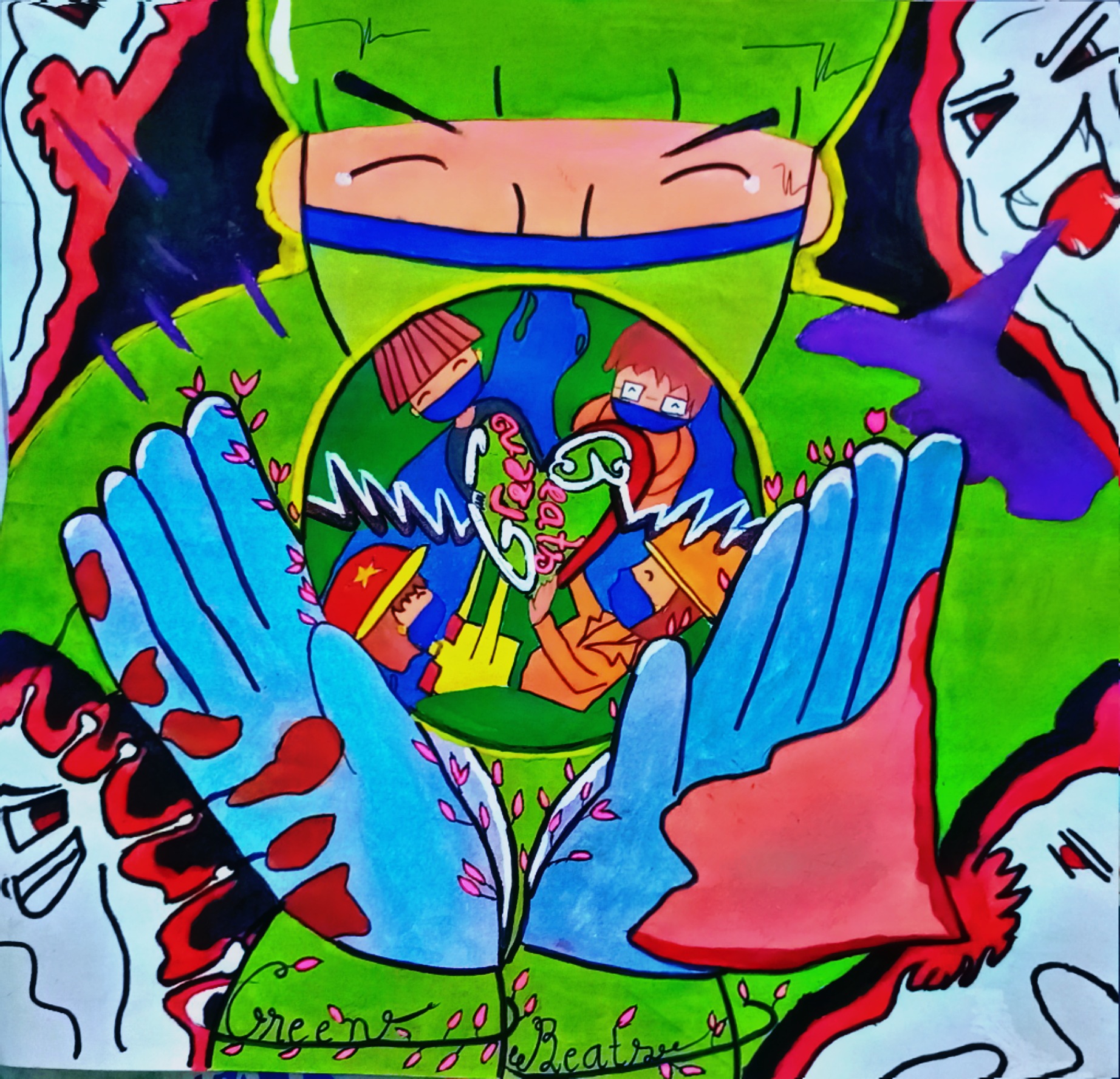 Và chính bạn “bạn là công nhân-nông nhân- nhân viên- cán bộ- học sinh- trẻ em- người lớn tuổi,…” là một nhịp đập Green tạo nên sức bền bỉ cho trái tim Green của những người bác sĩ, y tá ấy. Hãy cùng nhau chung tay lan tỏa, hãy là một phần trong dãy nhịp đập ấy bằng việc tuân thủ chính sách, chỉ thị của nhà nước về phòng chống dịch covid-19. Đại dịch cũng như một cơn mưa lớn kéo dài, có giông, có sấm chớp, có khi là cơn mưa đá dữ tợn,… nhưng cơn mưa nào rồi cũng sẽ tạnh, đại dịch rồi cũng đến lúc sẽ qua, chỉ cần đồng bào ta trên dưới một lòng đoàn kết, đại dịch lớn đến đâu cũng phải quy hàng. Tận dụng thời gian lúc này làm những việc mà trong gian trước chưa có cơ hội thực hiện như đọc sách, trồng cây, học kỹ năng mới, nấu ăn, chăm sóc người thân,… Vì sau cơn mưa lớn thường có cầu vòng, hãy tạo ra cầu vồng cho riêng mình.