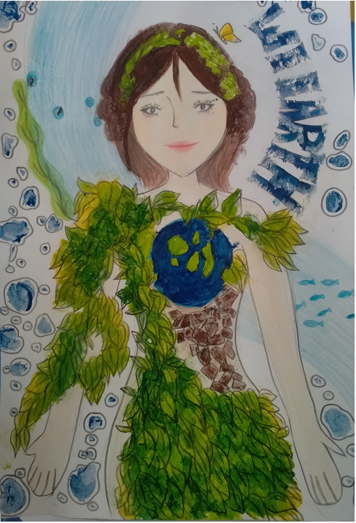 Là một con người nhỏ bé đang sống trên trái đất, hay chính là ngôi nhà của nhân loại, giữa con người và trái đất như hòa làm một bởi lẽ chúng ta sinh sống và phát triển như hiện nay là nhờ có trái đất. Hình ảnh những tán cây bao quanh con người cho thấy mối quan hệ mật thiết của thiên nhiên và nhân loại, trái đất như một quả tim của tất cả con người, âm thầm ban phát sự sống cho chúng ta. Bởi thế mà ta phải chung tay bảo vệ sự sống của mình hay của chúng mình! Hướng đến một thế giới phủ đầy màu xanh.