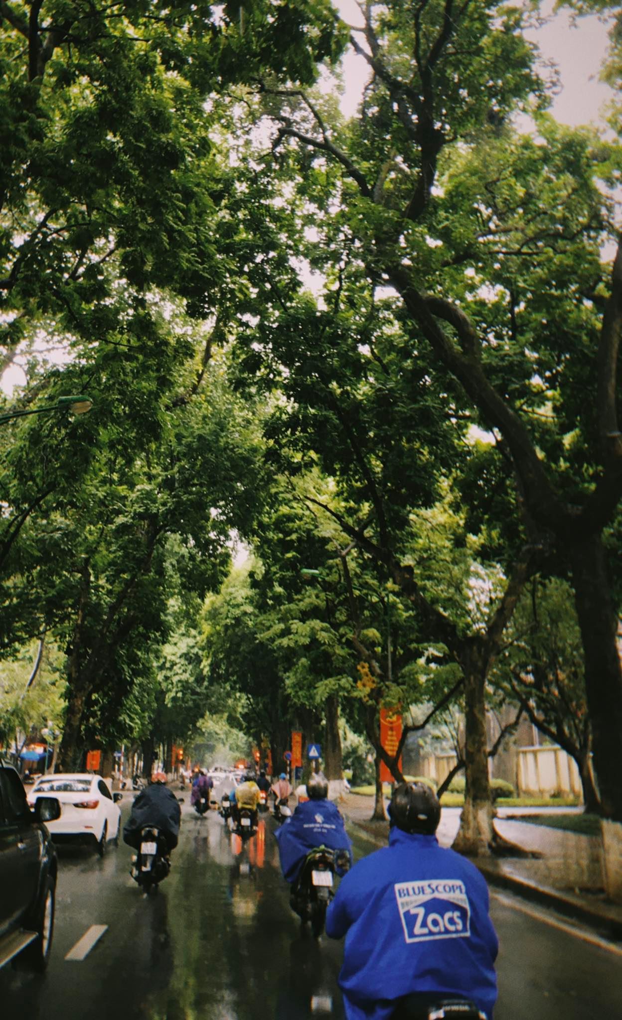 Phan Đình Phùng phố lãng mạn, mộng mơ bởi có hàng cây xanh đẹp nhất thành phố với ba hàng cây, vỉa hè rộng rãi, thoáng mát. Những cây xanh trên phố đa phần có tuổi đời cả trăm năm. Buổi chiều hôm đó mưa rơi, tôi thấy con phố thật là yên bình trước cảnh nhộn nhịp, xô bồ của phố phường Hà Nội.