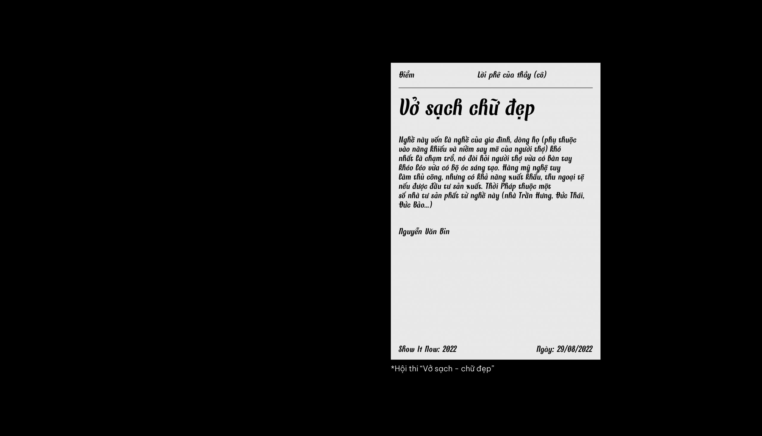 Hi, mình là Văn Bin – sinh ra và lớn lên ở vùng đất thiêng liêng nơi có chùa Tòa Thánh & Núi Bà Đen(Tây Ninh). Mình từng có một khoảng thời gian được theo học ở Arena Multimedia và hiện tại mình là một Freelancer. Mình cảm thấy mùa Show It Now: 2022 này khá là thú vị đối với mình và mình muốn thử sức với nó… Dưới đây là những “Con Chữ” mà không thể nào Việt Nam hơn mình muốn gửi đến mọi người