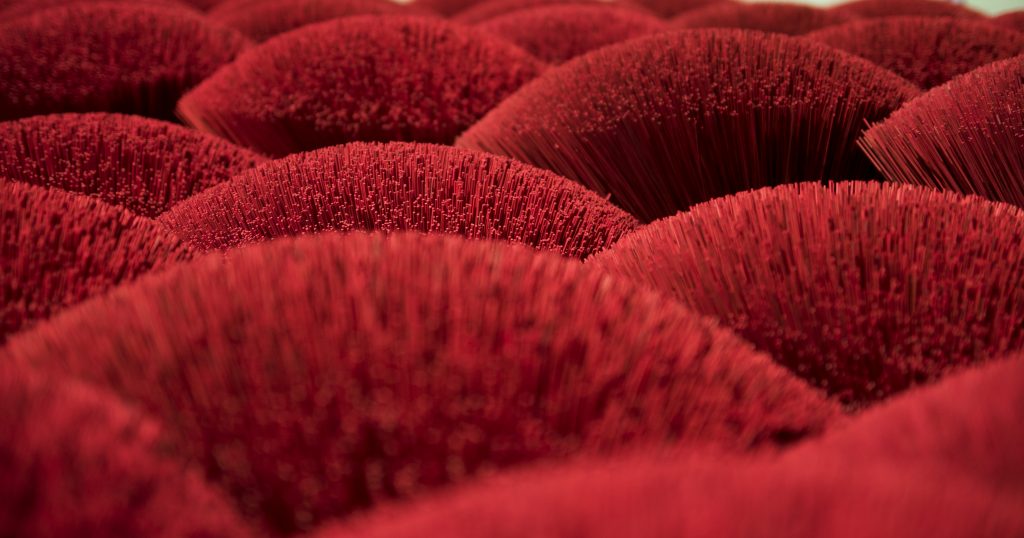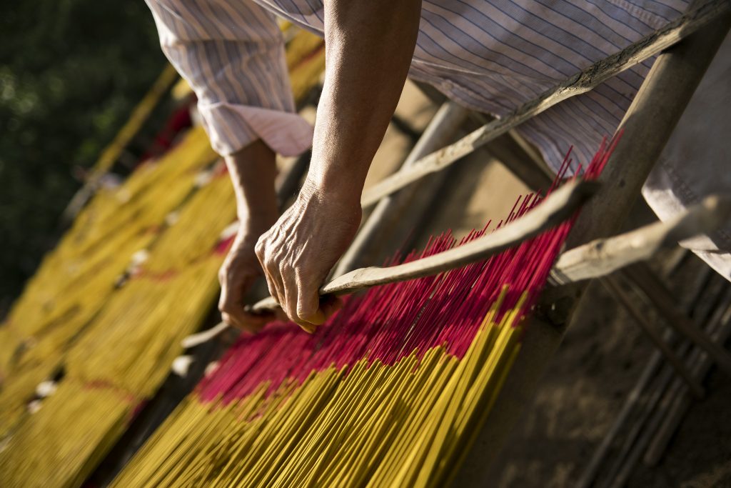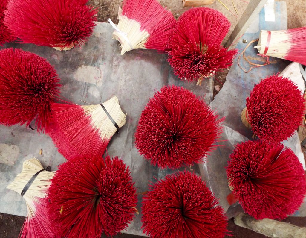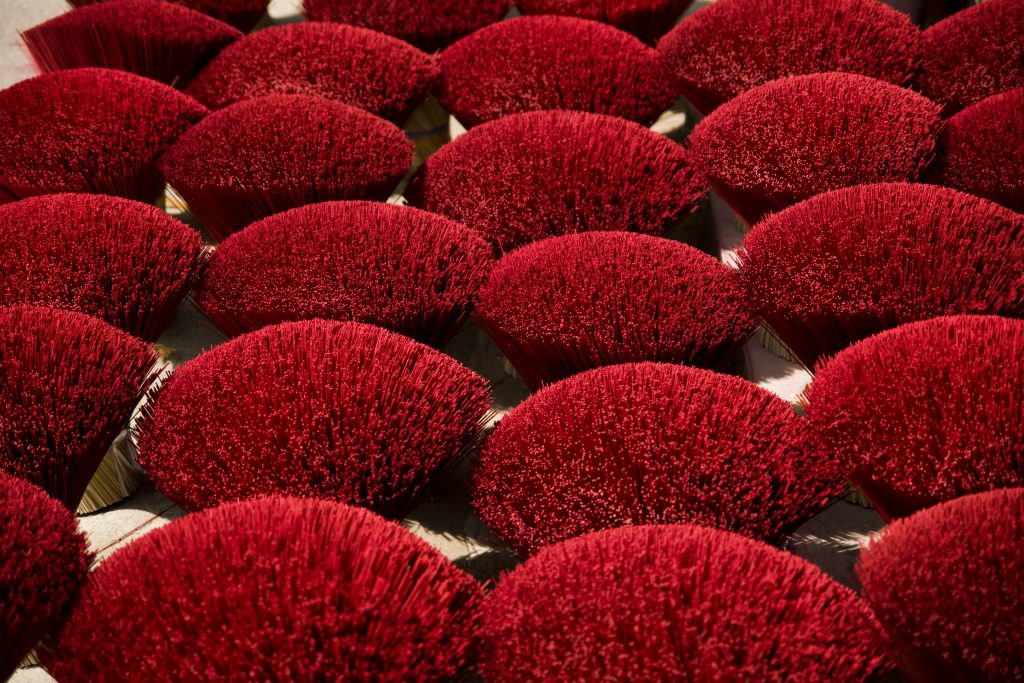 Nhang hành trình đi về tuổi thơ của tôi ở một vùng nhỏ huyện Bình Chánh. Điều làm tôi thích thú nhất chính là sự hòa mình của những bó nhang dưới bầu trời nắng, một màu đỏ tràn dài khắp các nẻo đường kéo vào đến bên trong từng nhà hộ dân. Người làm nhang nơi đây là một nghệ nhân, những bàn tay khéo léo, những sợi dây nối linh thiêng giữa người sống và người đã khuất. Tất cả hòa quyện tạo nên một bức tranh thật đẹp của cuộc sống bình dị mà cao thượng.