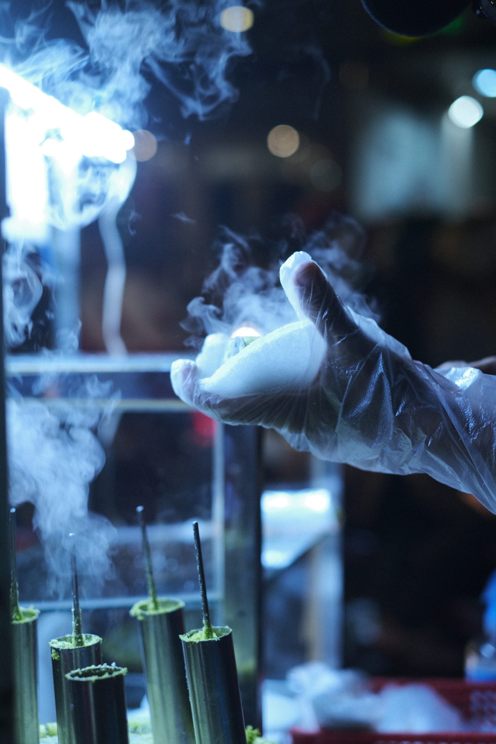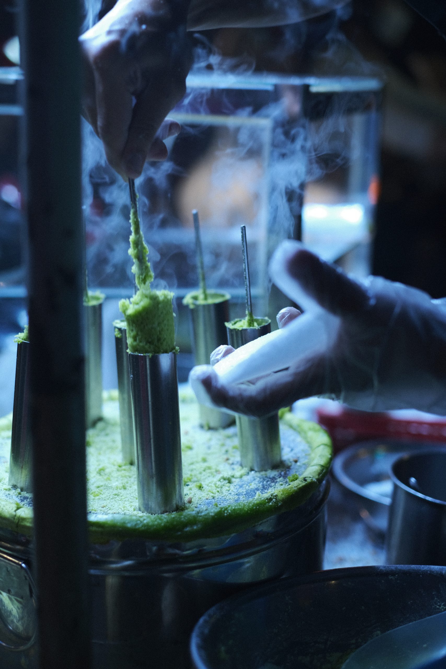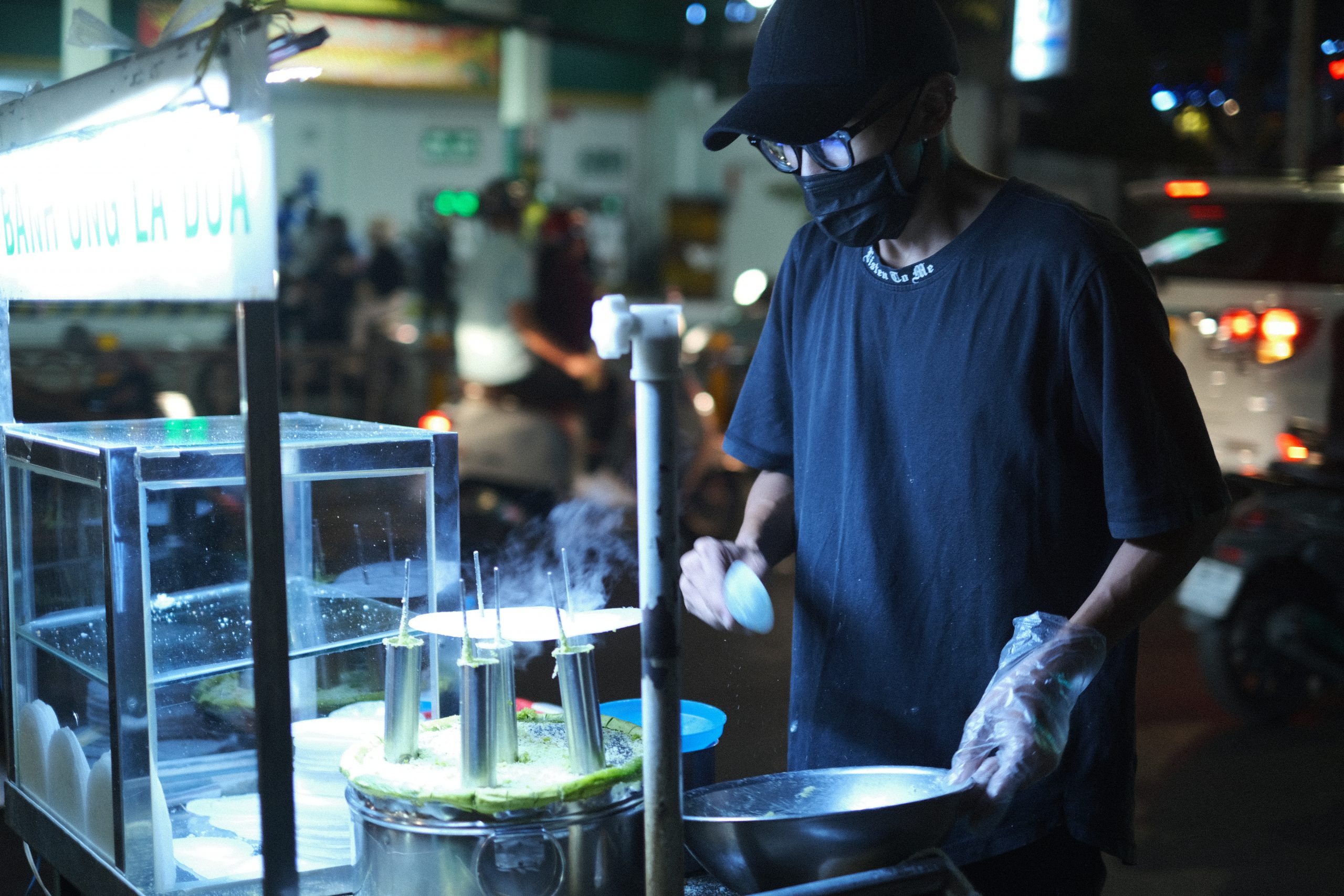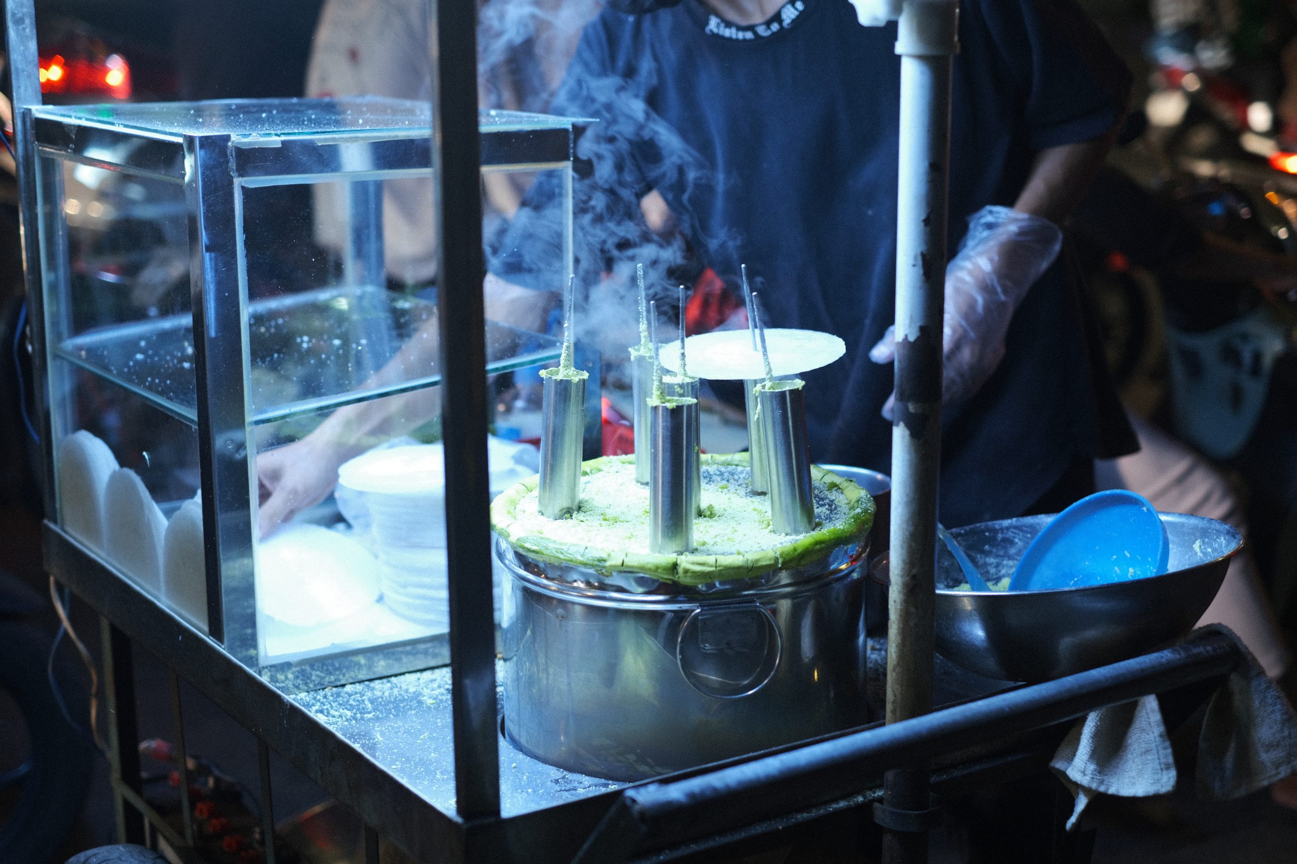 Hương – Vị – Sắc, mình thể hiện 3 chữ này qua những chiếc ảnh này, xanh của màn đêm, xanh của bánh ống lá dứa, và một chút màu nóng của đường phố, tựa như cảnh những người bán hàng rong giữa một đường phố tấp nập người qua kẻ lại, hay cũng chỉ đơn giản là một kẻ đói bụng thèm đi ăn bánh ống lá dứa hoi.