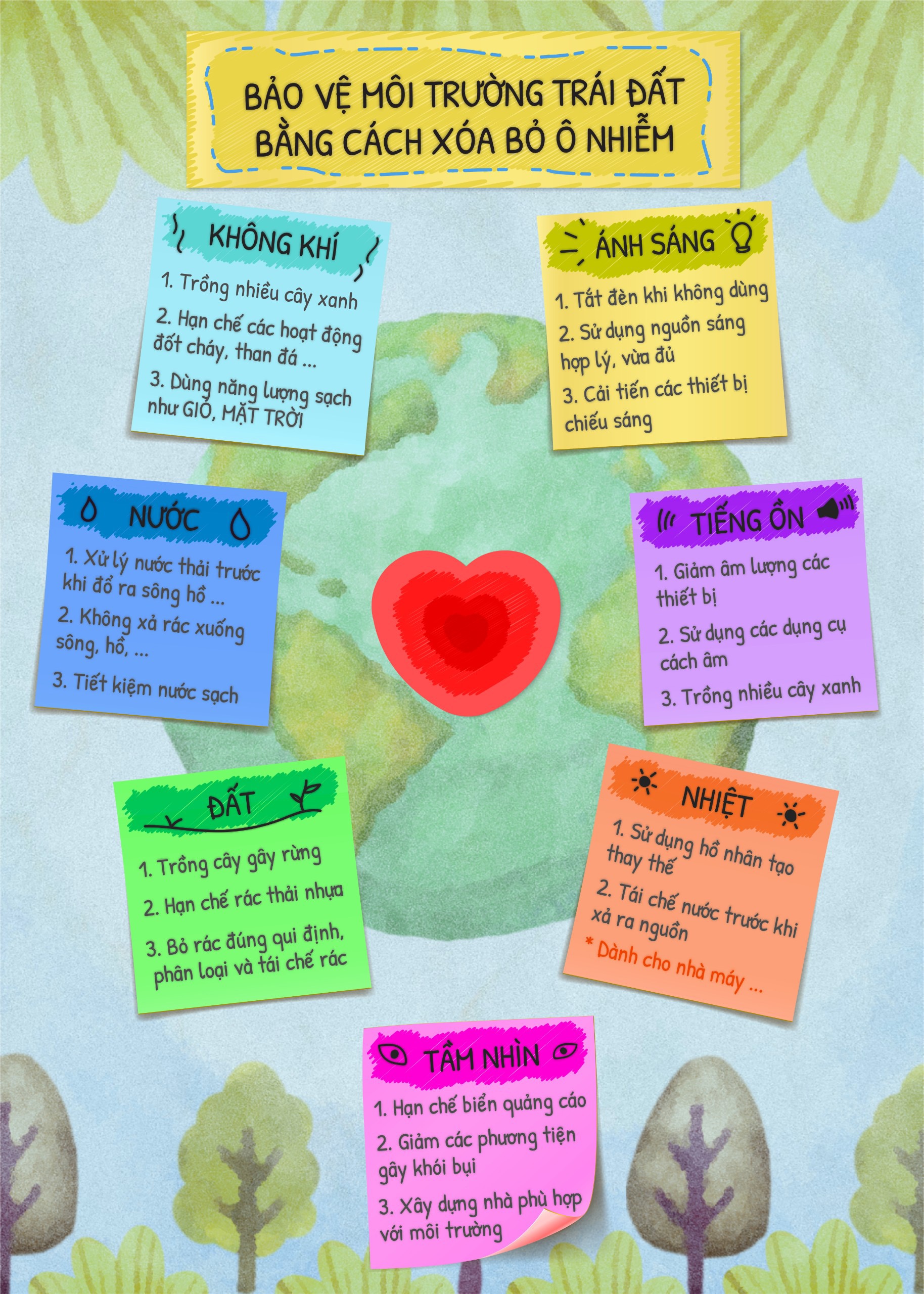 Bảo vệ môi trường là việc rất quan trọng vì trái đất của chúng ta đang bị ảnh hưởng ô nhiễm nặng nề. Mọi người có biết rằng, trái đất đang chịu đựng 7 loại ô nhiễm môi trường mà con người gây ra, đó chính là: ô nhiễm không khí, ô nhiễm nước, ô nhiễm đất, ô nhiễm ánh sáng, ô nhiễm tiếng ồn, ô nhiễm nhiệt và ô nhiễm tầm nhìn.