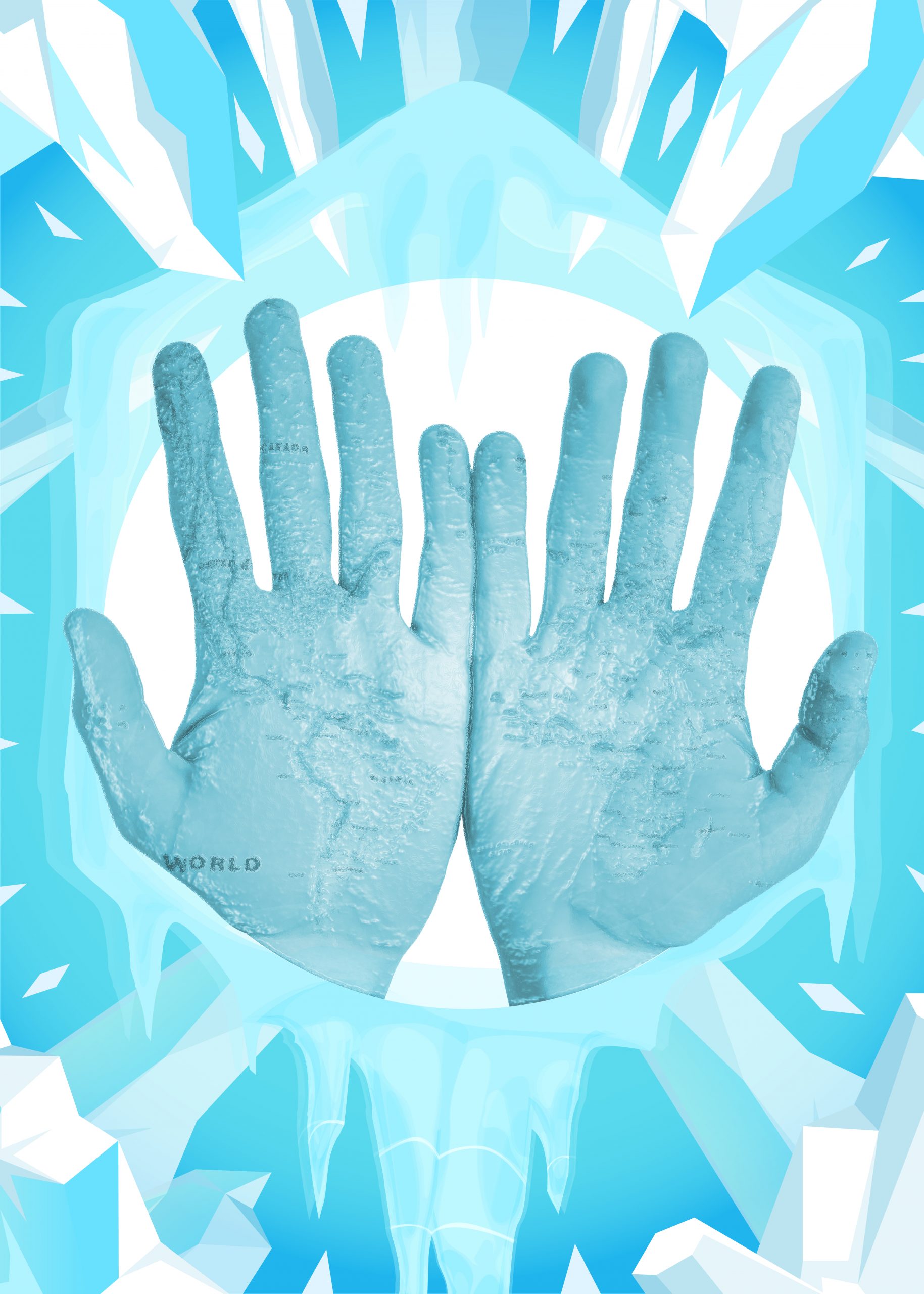 Ở tấm hình số 3, cái lạnh gay gắt như đang châm chích với những mảng băng như mũi dao sắc nhọn đâm vào cơ thể. Bàn tay lạnh lẽo, mọi thứ đều bị đóng băng khi chúng ta trải qua 1 mùa đông rất lạnh. Hiện tượng nóng lên toàn cầu theo nghiên cứu không chỉ làm tan băng vĩnh cửu mà còn gây ra mùa đông lạnh hơn và khắc nghiệt hơn.