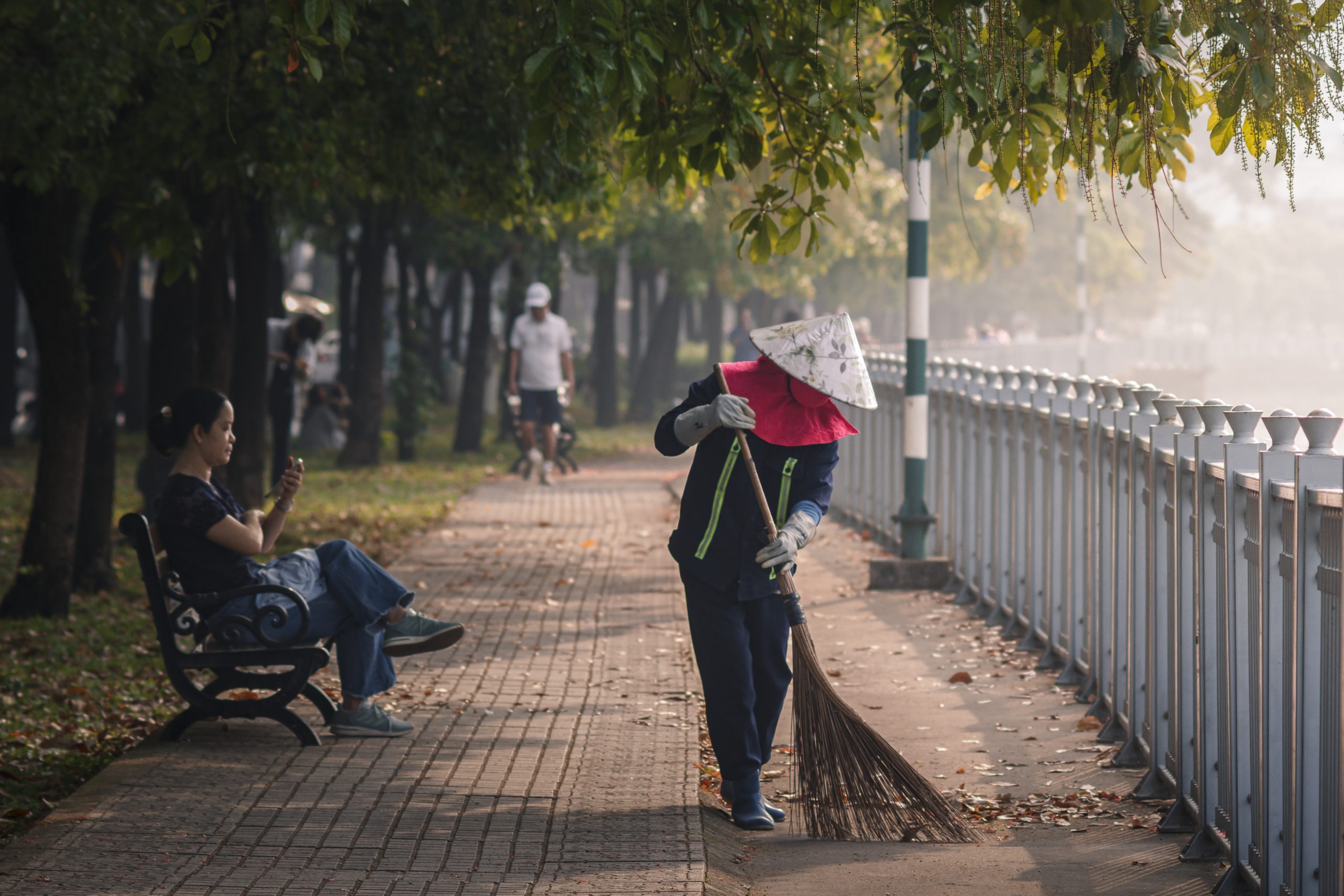 Thời điểm cuối tháng 10 đến đầu tháng 11, những cây lộc vừng ở hai bên bờ kênh Nhiêu Lộc – Thị Nghè bước vào mùa thay lá. Vào mỗi buổi sáng, khi ánh nắng mặt trời vừa lên, cũng là lúc cô chú quét dọn vệ sinh dọn những lá cây rơi vào lối đi. Một khung cảnh nhẹ nhàng của nét đẹp lao động hiện ra.