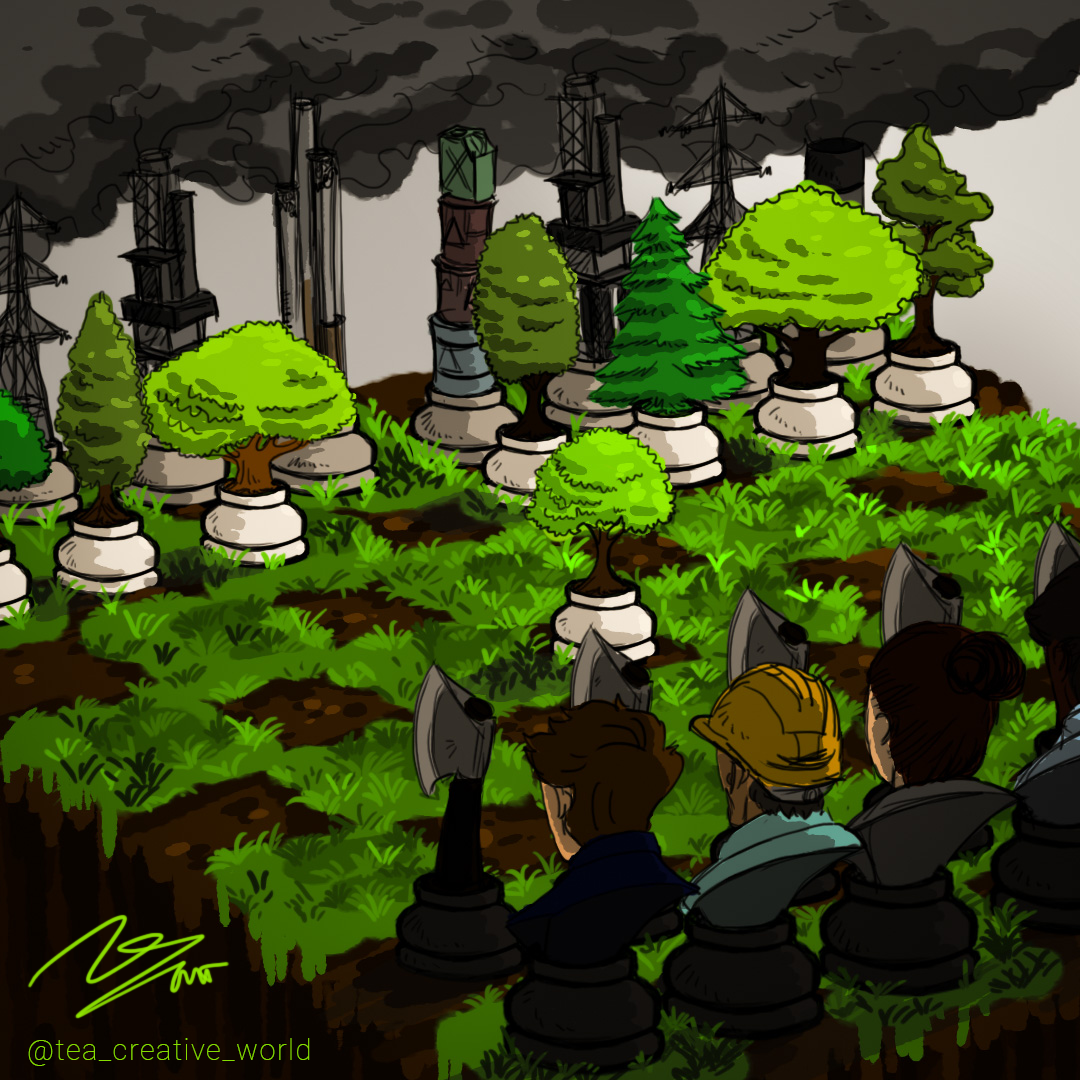 Cuộc sống ngày càng phát triển, những tòa cao ốc, những nhà máy khổng lồ hay những khu công nghiệp rộng hàng ngàn hecta có phải là cái đích đến mà con người phải đánh đổi môi trường tự nhiên để đạt được? Dựa vào ý tưởng ban đầu là “sự đánh đổi”, rất giống với trò chơi cờ vua, muốn chạm tới mục đích – chiếu tướng của đối thủ – thì bắt buộc người chơi cờ phải tính toán mọi chiến thuật, tất nhiên không thể không kể đến việc hy sinh các quân còn lại. Và cụm từ chúng ta có lẽ được nghe nhiều nhất là “thí con tốt”. Điều này đồng nghĩa với việc quân tốt là quân bị xem thường trên bàn cờ, việc hy sinh con tốt chỉ được xem là sự mở đường cần có trong chiến thuật. Từ đó, khi kết hợp thực trạng cuộc sống và khái niệm trên, mình đã có suy nghĩ rằng: “Liệu chúng ta có đang xem thường tự nhiên và việc đánh đổi, tàn phá nó chỉ là một “nước cờ” cần phải có để con người có thể phát triển?”.