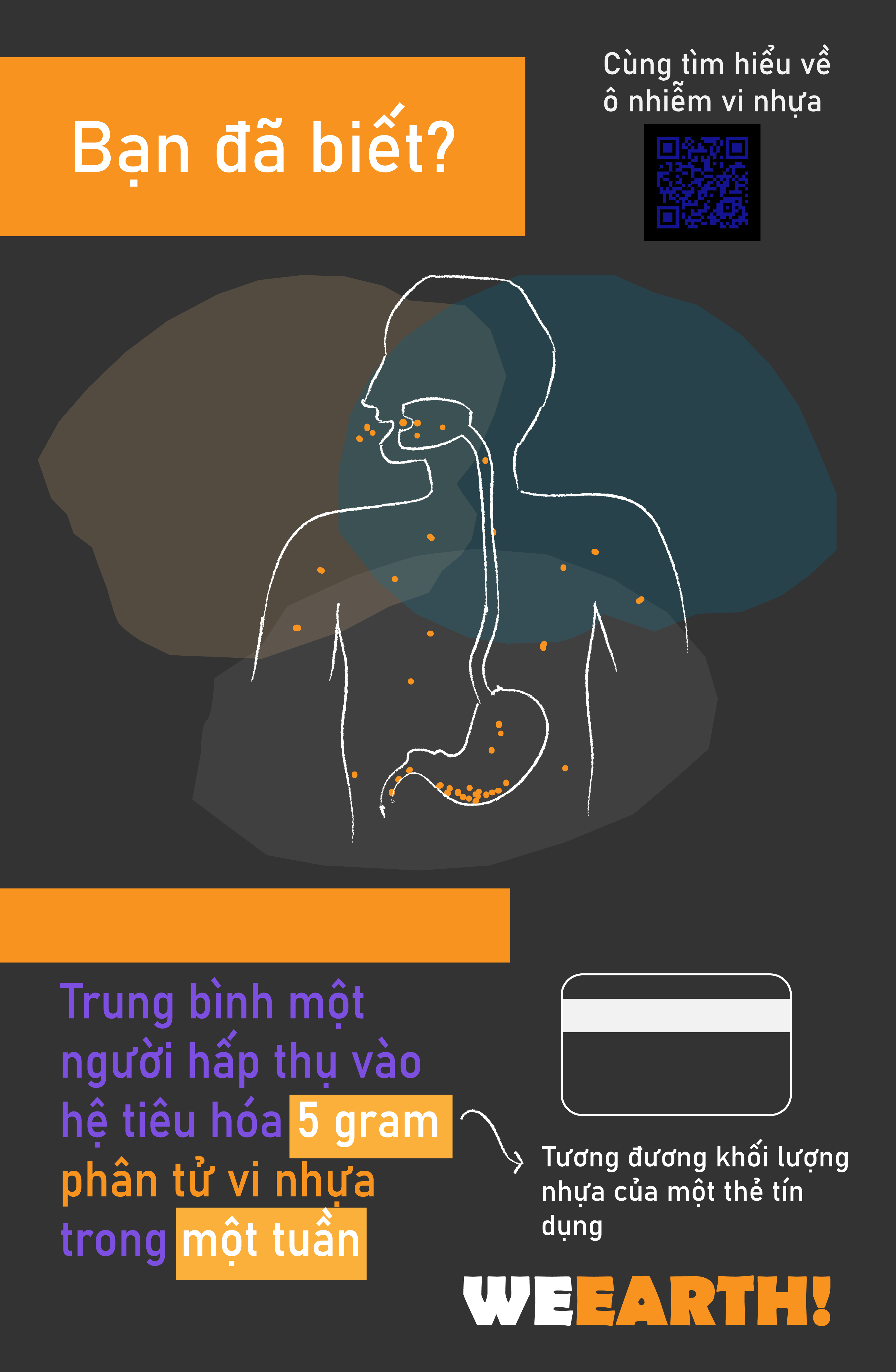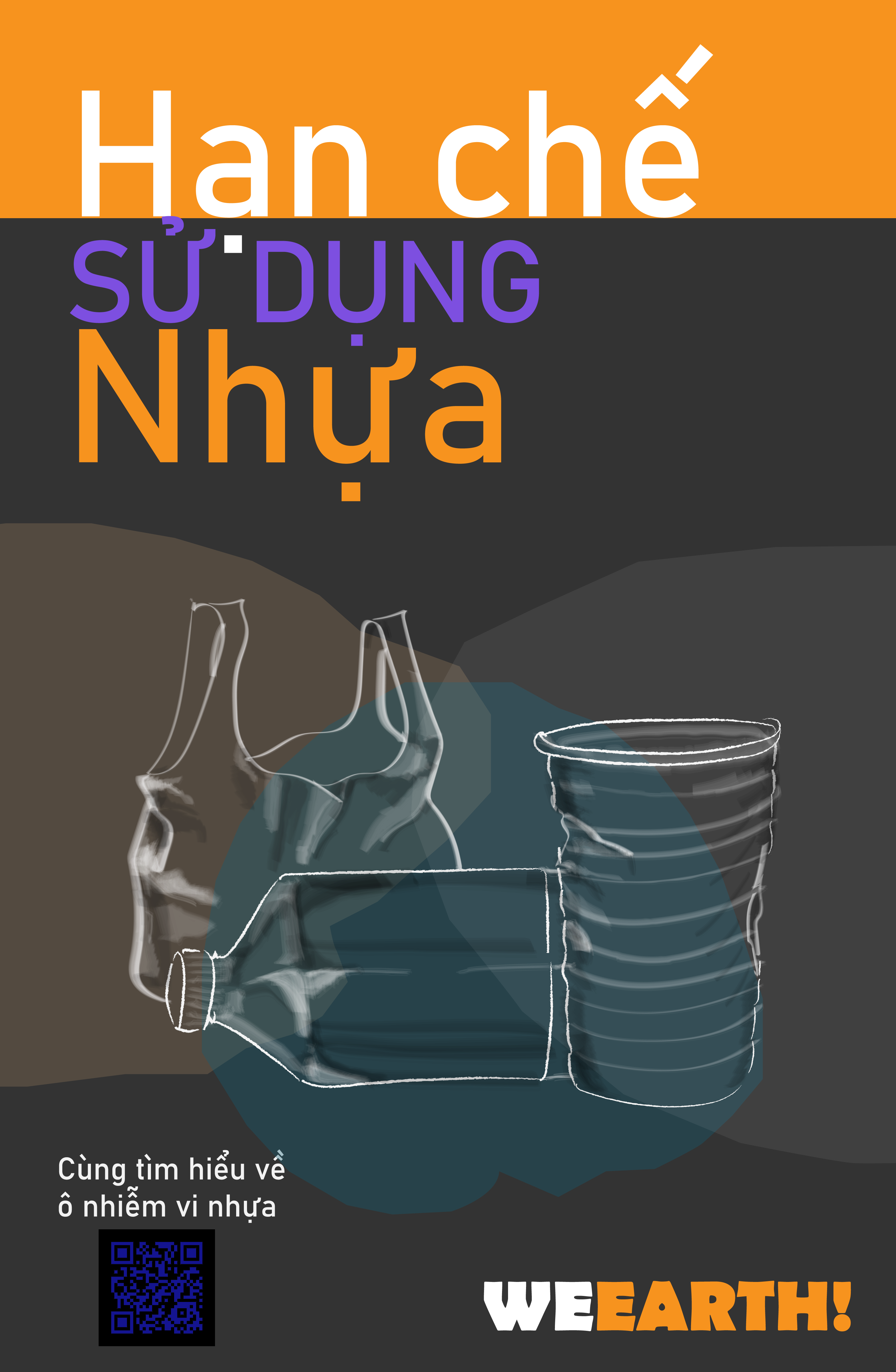 Một trong những vấn đề cấp bách và nan giải của môi trường hiện nay chính là rác nhựa và vi nhựa. Với ô nhiễm trắng, ấn tượng nhất với mình chính là hình ảnh những sinh vật dưới nước nhầm rác nhựa là thức ăn và ăn chúng. Rác nhựa khiến sinh vật hấp thụ chất dinh dưỡng kém, có thể gây nghẹn và ngộp thở nếu lạc vào đường thở. Đã có nhiều hình ảnh ghi lại các sinh vật biển chết dạt vào bờ mà bên trong cơ thể chúng là những bọc nilon. Những người thiếu ý thức vẫn có thể thờ ơ nhưng một lúc nào đó, họ sẽ nhìn thấy hậu quả của hành động xả rác bừa bãi ngay trên chính bữa ăn của mình. Bởi môi trường là một hệ sinh thái tuần toàn, những gì chúng ta thải ra không tự nhiên biến mất, chúng chỉ trở lại với chúng ta vào một lúc nào đó. Ô nhiễm vi nhựa là một chuyển biến nan giải của ô nhiễm trắng, và để hiểu một cách đầy đủ về nó thì mọi người sẽ cần đọc các tư liệu nghiên cứu nước ngoài. Điều này có thể phần nào cản trở sự nhận thức của mọi người nên mình mong rằng với hình ảnh và màu sắc, khái niệm ô nhiễm vi nhựa sẽ trở nên dễ tiếp cận với mọi người hơn. Nhựa dễ phân rã nhưng rất khó để phân hủy. Các nghiên cứu về vi nhựa vẫn còn hạn chế nhưng ảnh hưởng của nó lâu dài lên hệ sinh thái và sức khỏe con người được đánh giá là khôn lường. Bởi ô nhiễm vi nhựa là đặc trưng thuộc về kỉ nguyên khoa học kĩ thuật nên màu sắc kết hợp sẽ gợi liên tưởng về máy móc công nghệ, sự đơn giản và tính biểu tượng cao. Nguồn thông tin poster và infographic của mình chủ yếu trích từ các bài nghiên cứu tổng hợp trên wikipedia theo những gì mình hiểu.